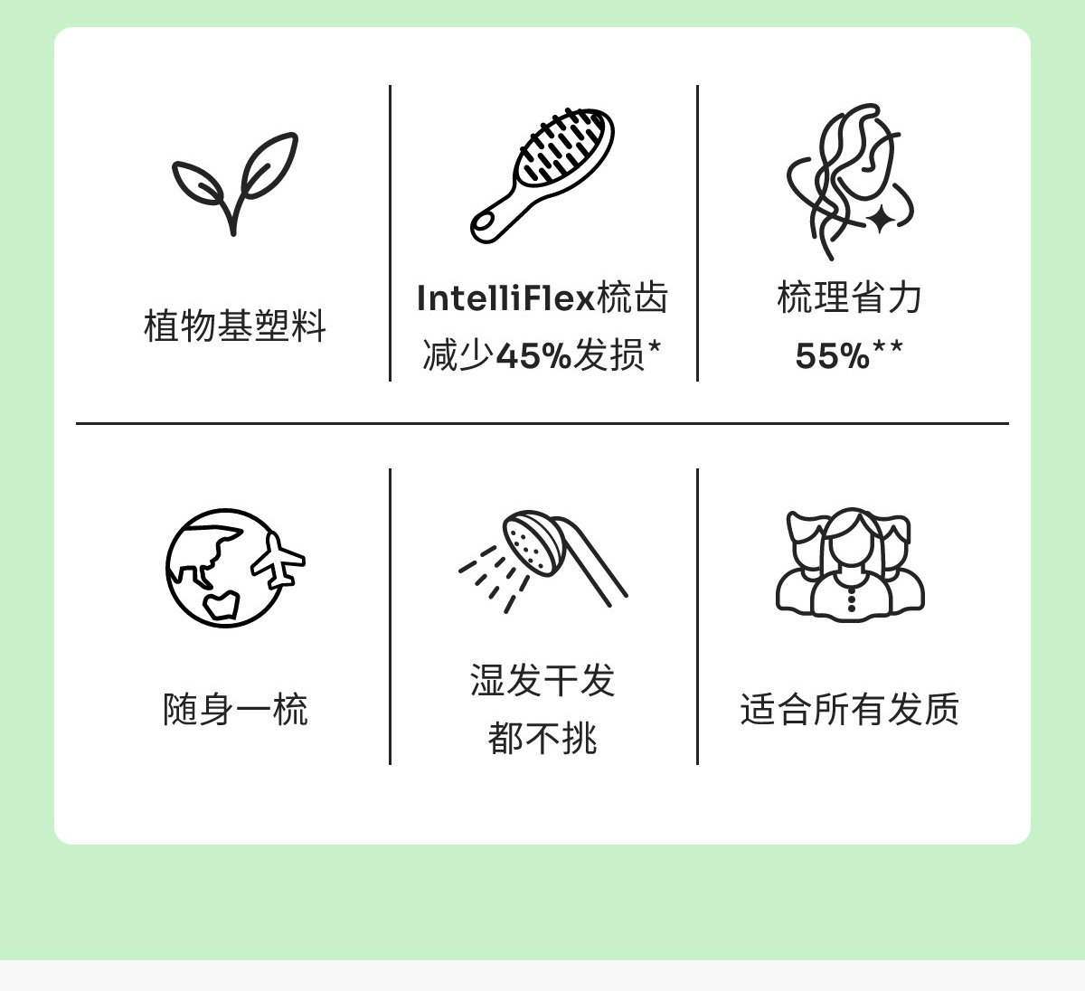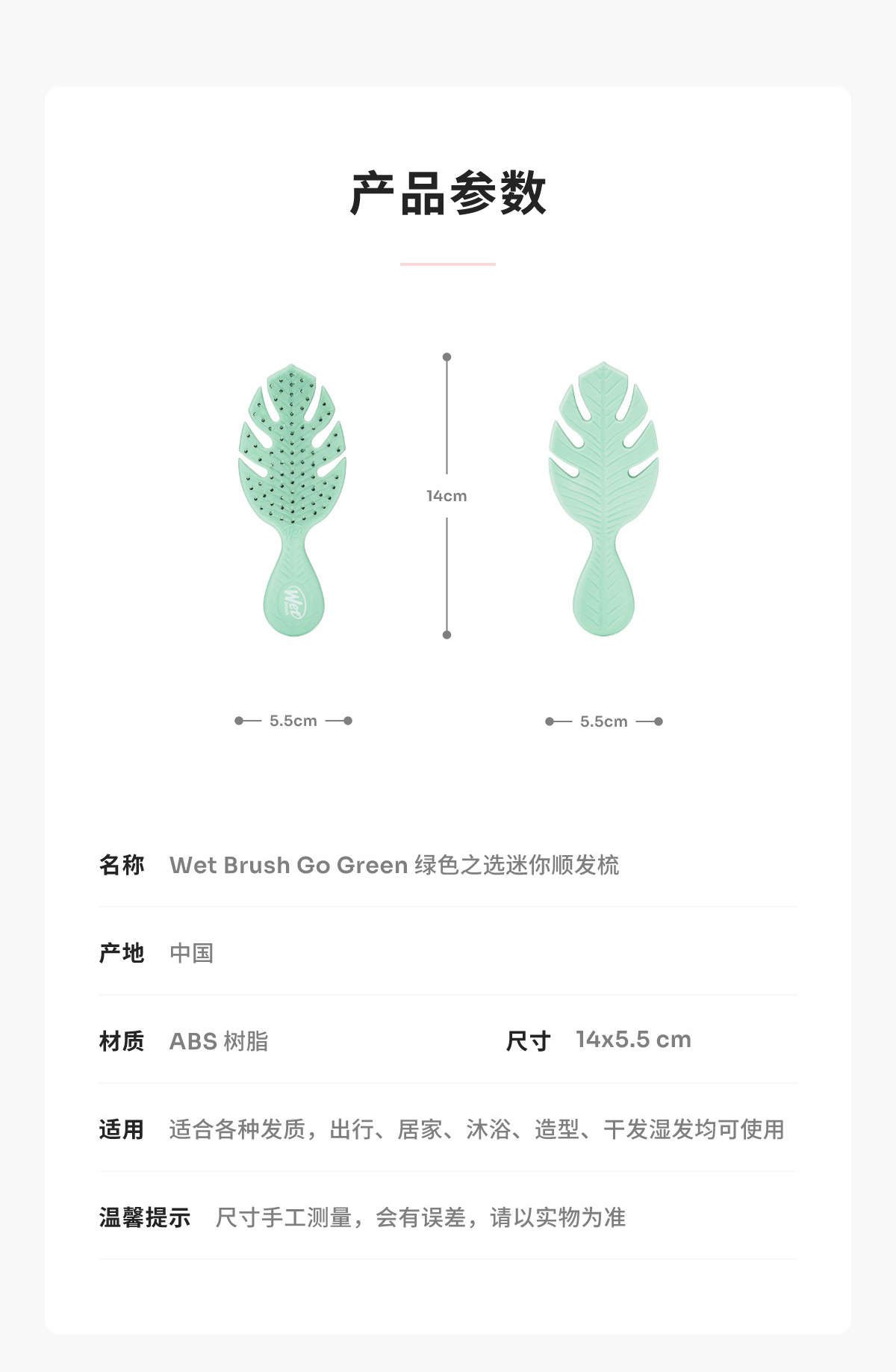 美国Wet Brush干湿两用迷你顺发梳-绿色之选系列mini