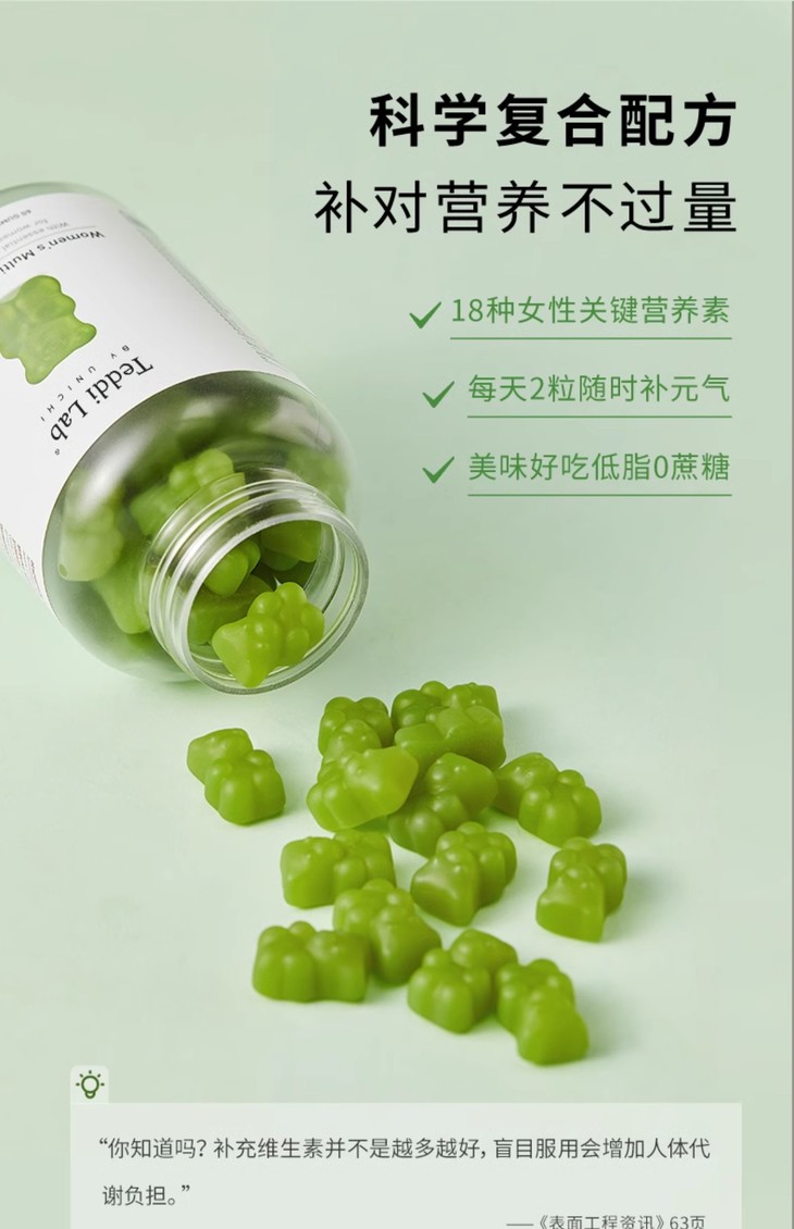 【保税】澳洲Unichi 女性多维营养维生素小熊软糖 体质健康60粒/瓶