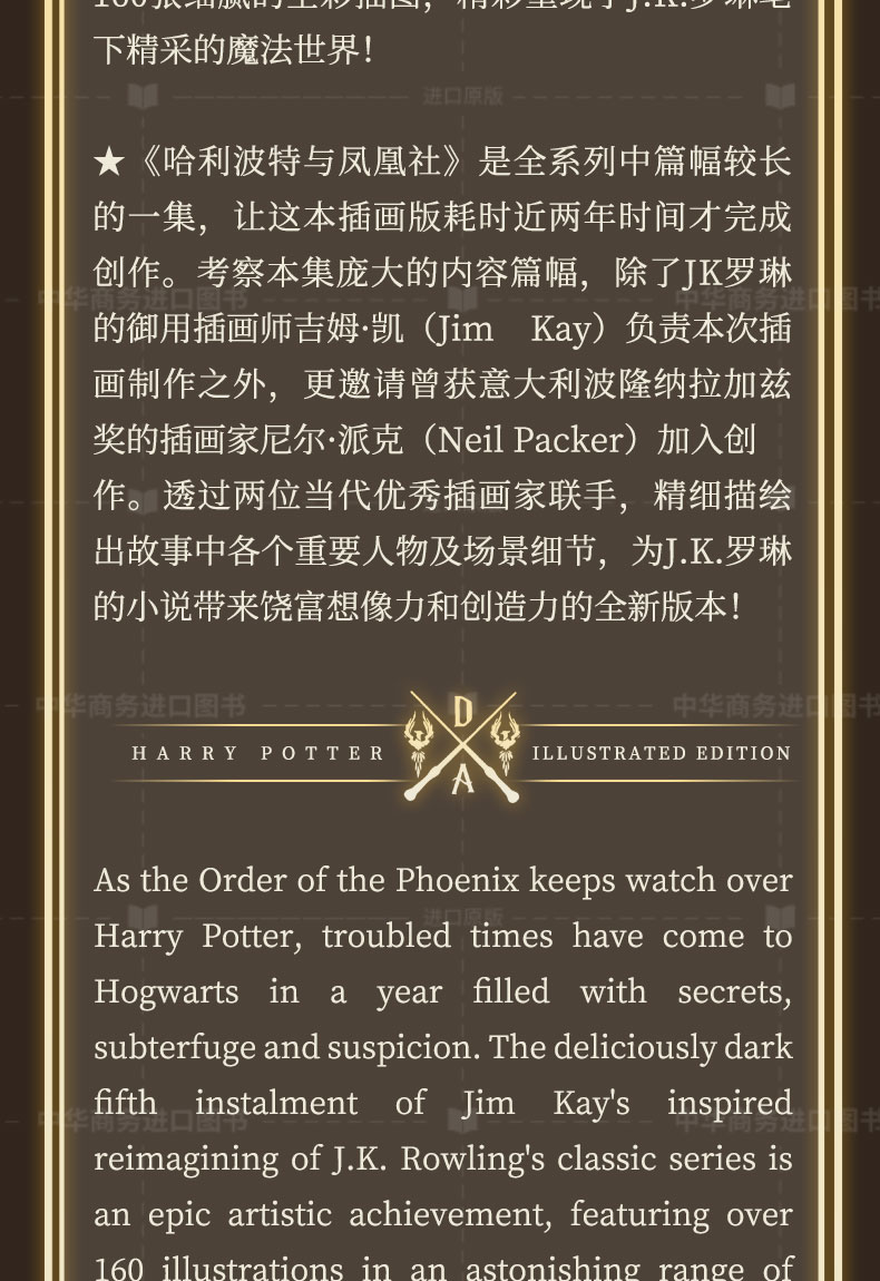 【中商原版】哈利波特精装彩绘插图版5 哈利波特与凤凰社 英文原版 哈利波特全彩绘本 吉姆凯 JK罗琳 Harry Potter the Order of The Phoenix