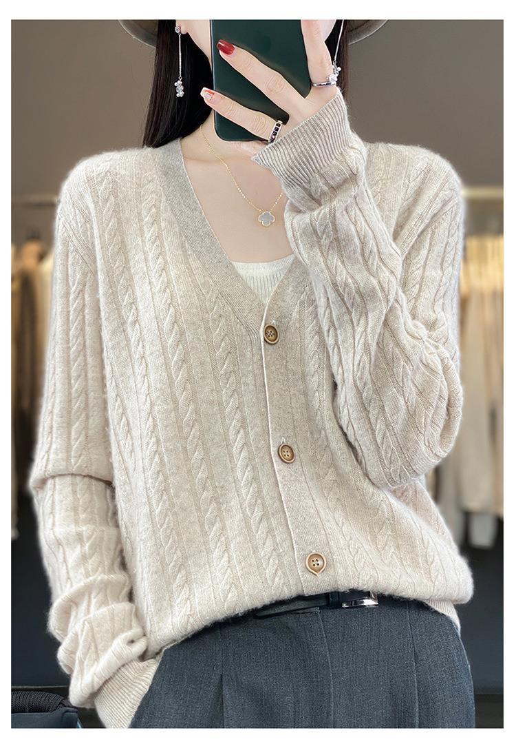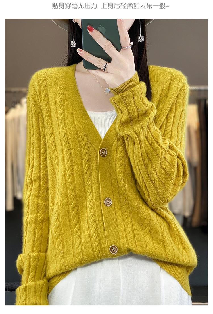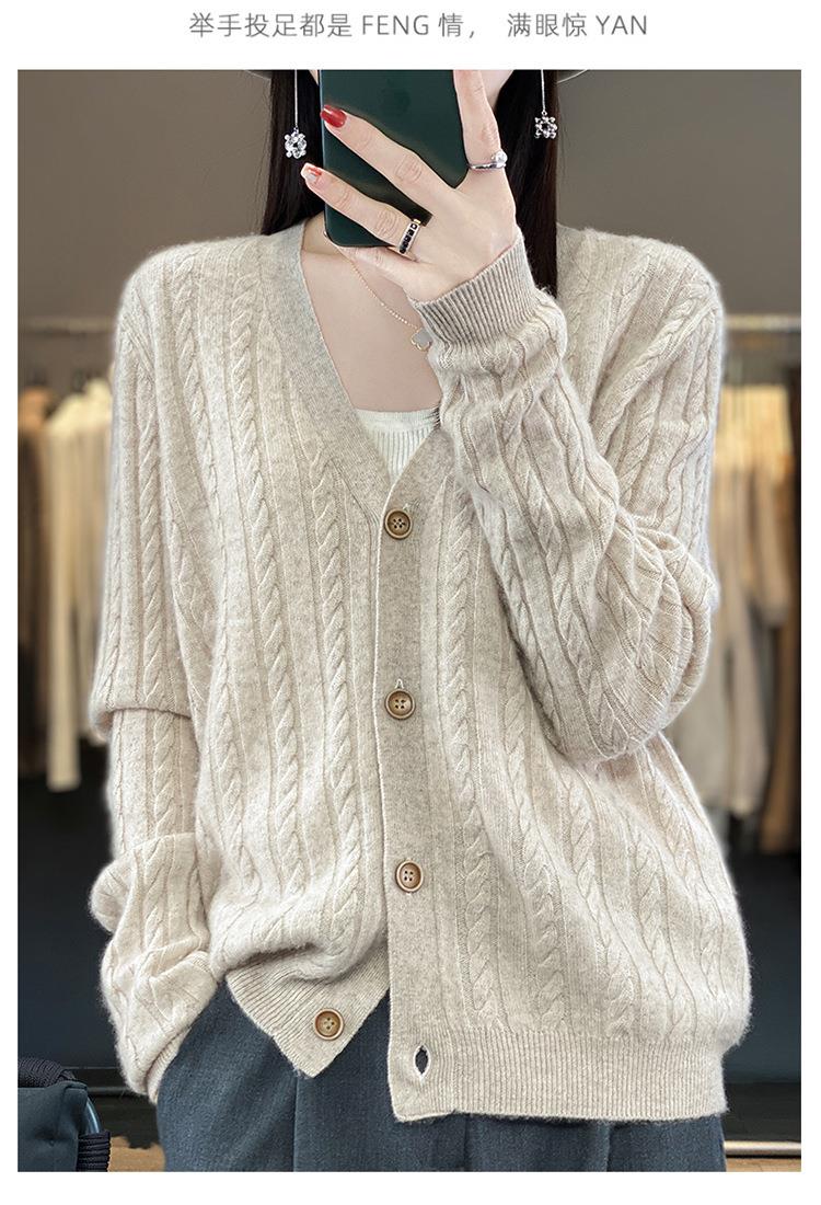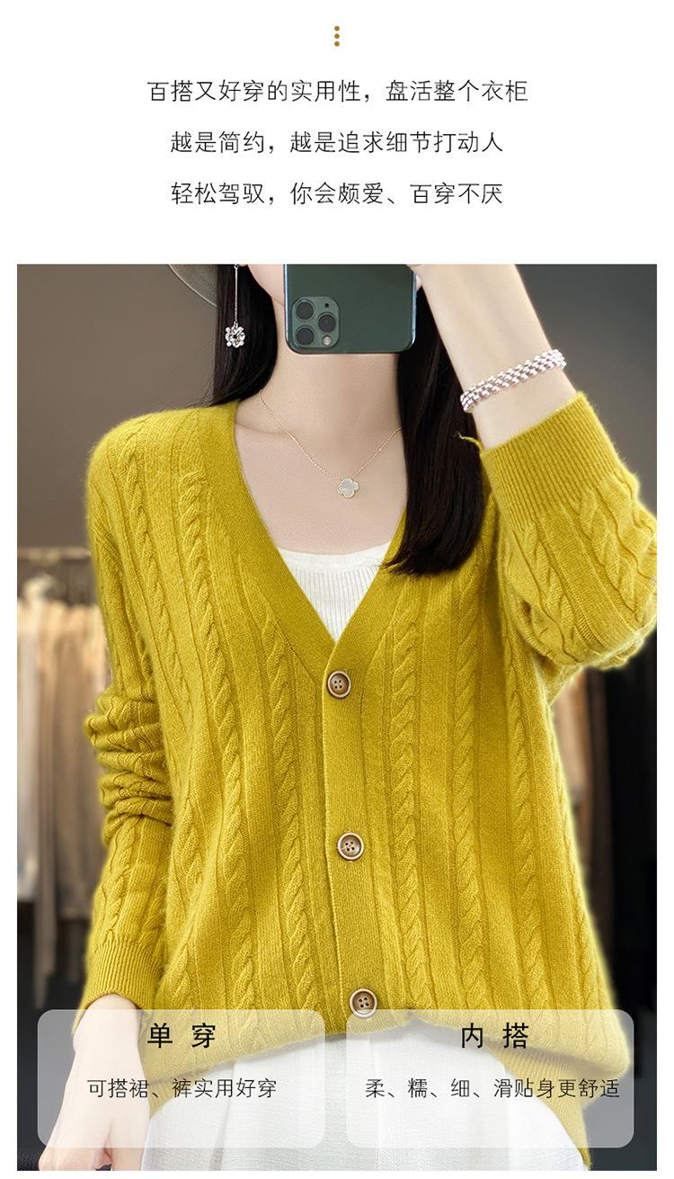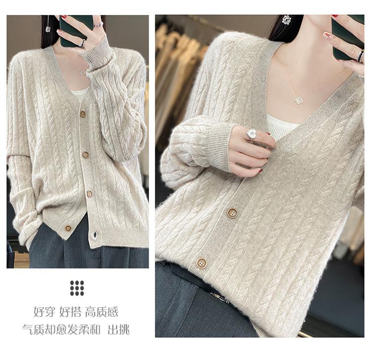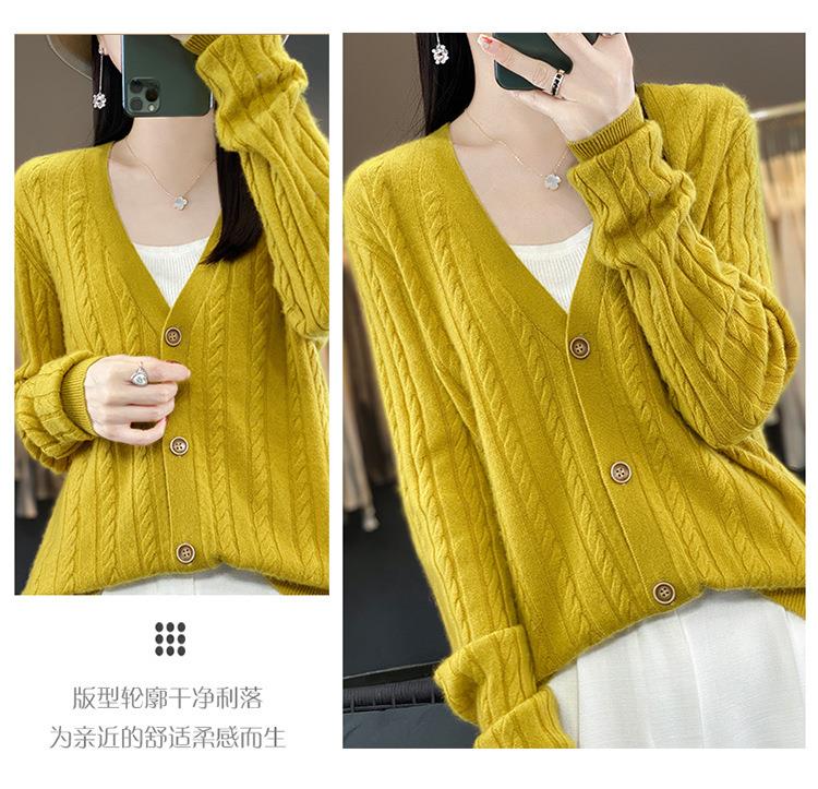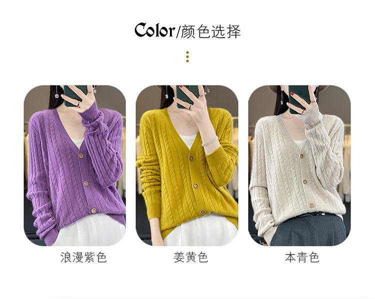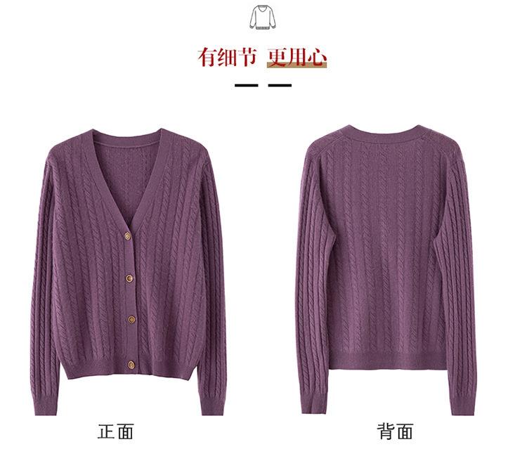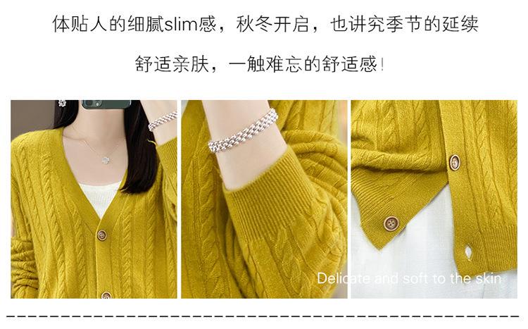 2023年秋冬新款韩版女士纯羊毛螺纹针织长袖纯色外搭女士羊毛开衫