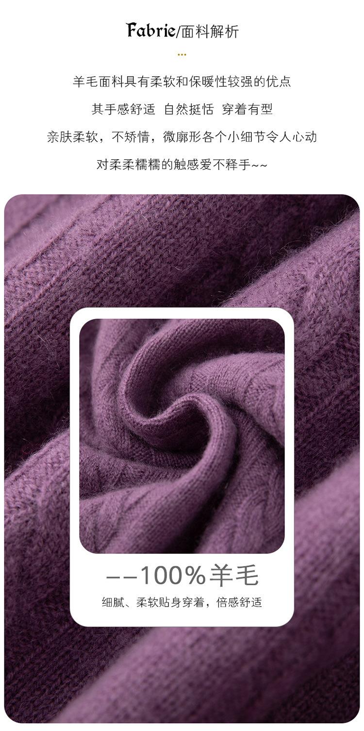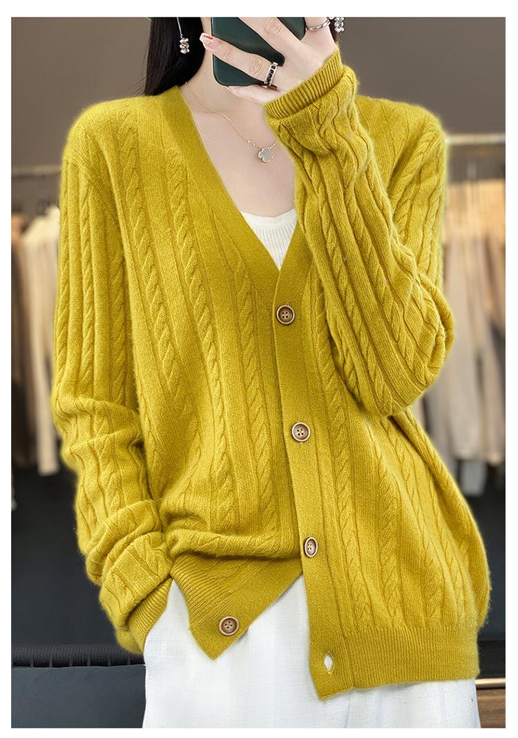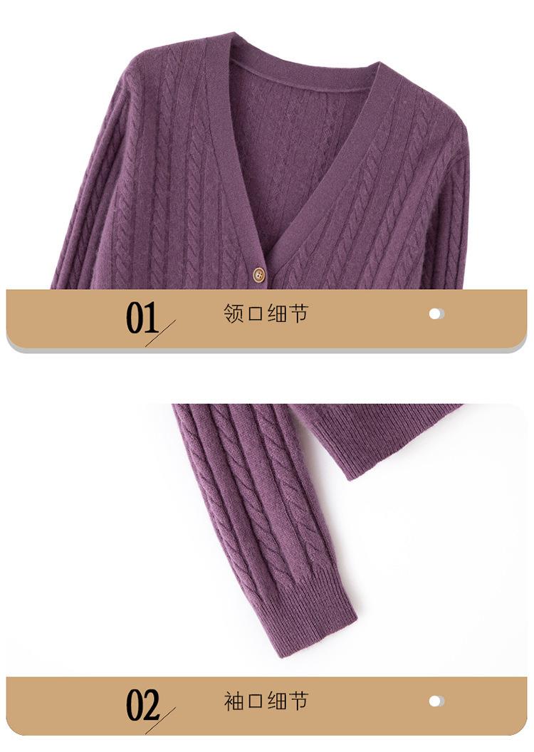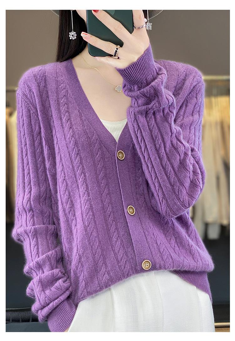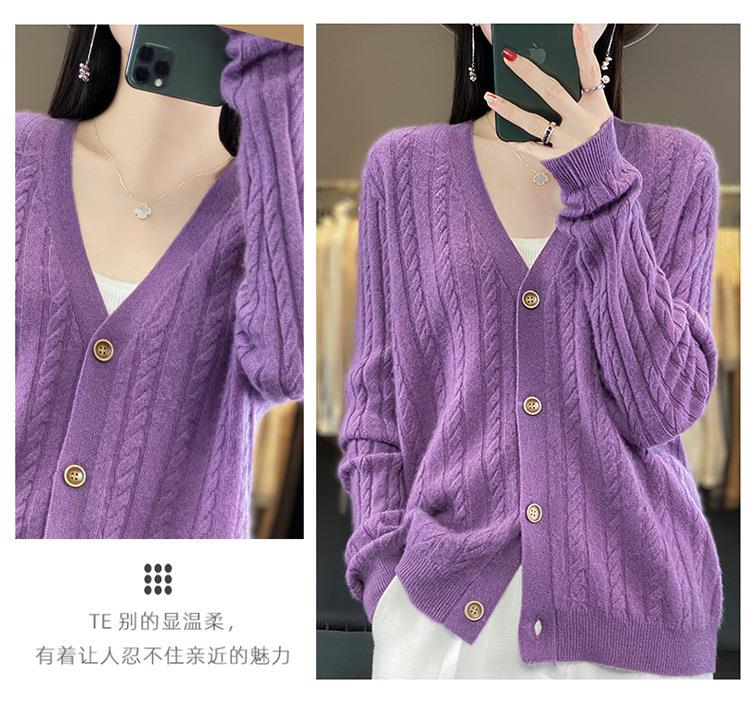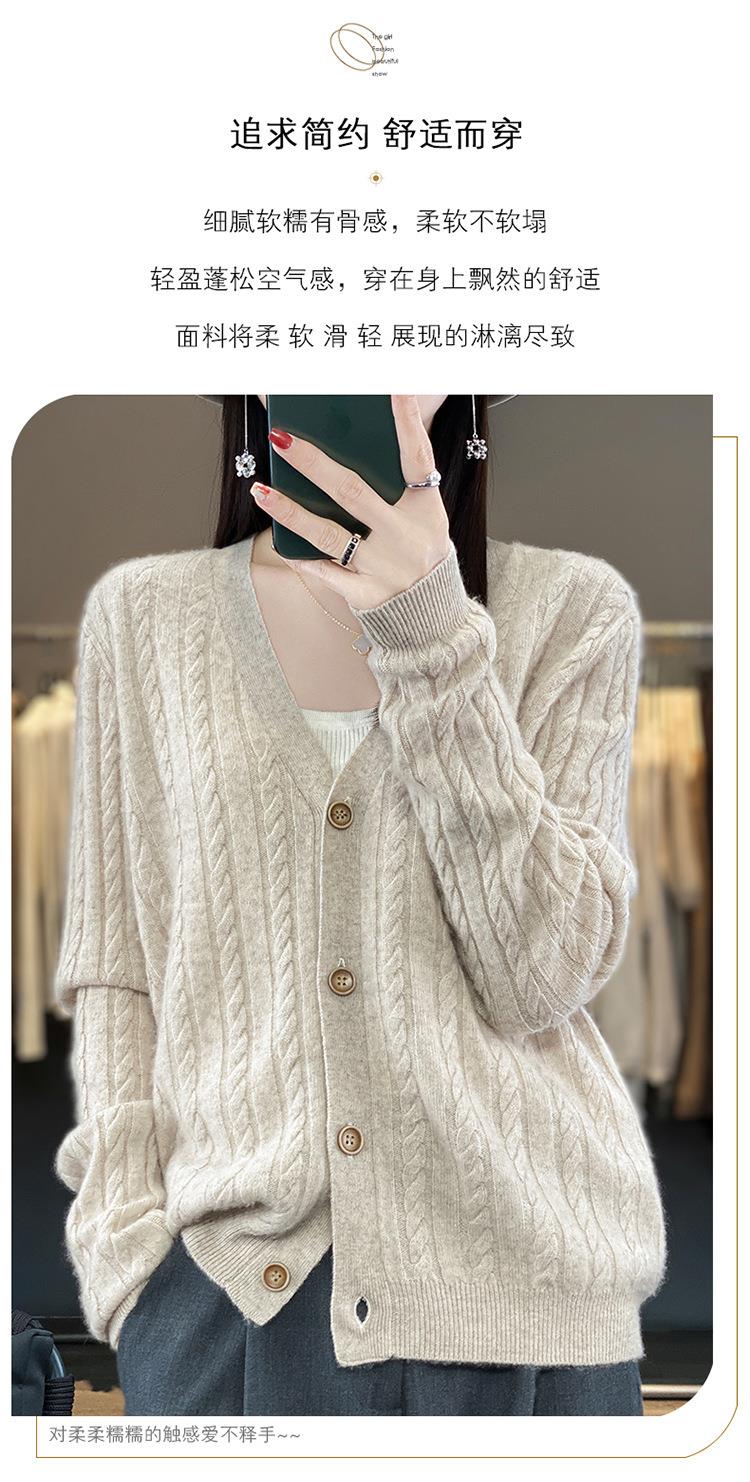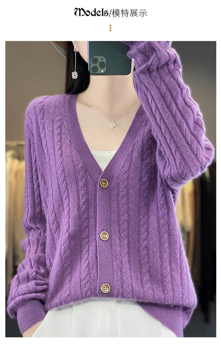 2023年秋冬新款韩版女士纯羊毛螺纹针织长袖纯色外搭女士羊毛开衫