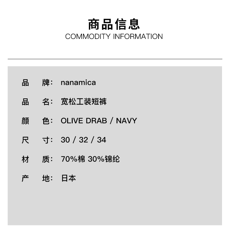 nanamica Cargo Shorts 机能性面料宽松工装短裤