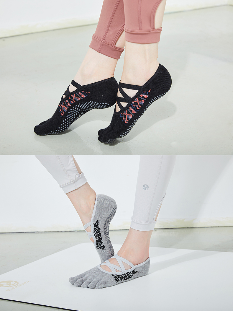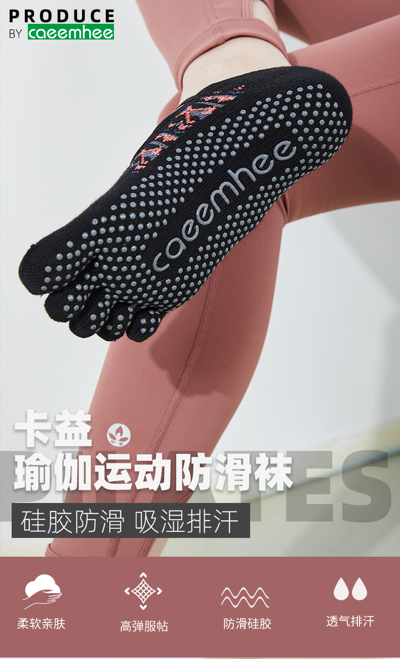 【新品】拼色五指分趾健身地板袜瑜伽普拉提袜防滑舞蹈露背袜