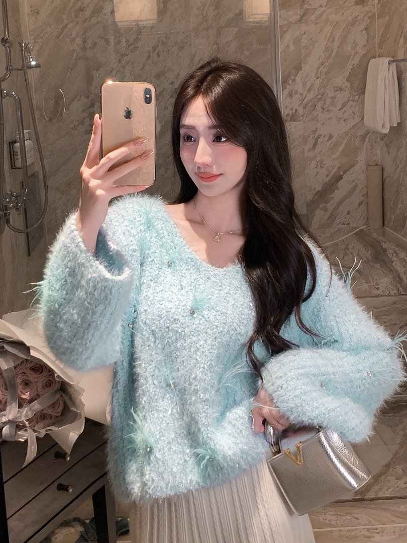 张心子【蓝色雪山】秋冬氛围感仙气马海毛毛衣 U2511117