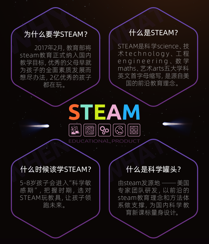 STEAM玩具,S代表了Science(科学)bai、T代表了duTechnology(技术)、E代表了Engineering(工程)、M代表了Maths(数学zhi)、A代表了Art(艺术),daoSTEAM玩具由近年来风行于美国的STEM教育理念衍生而来,着力于培养孩子的科技理工素养,相比于知识,更强调解决问题的能力。