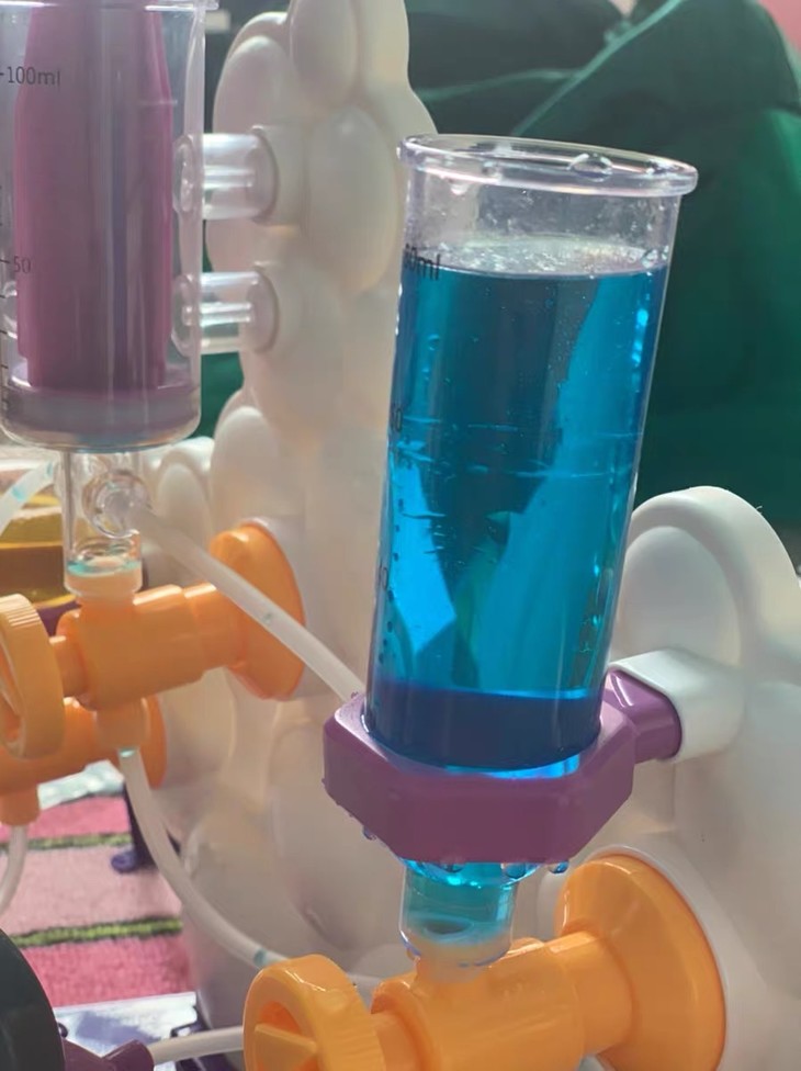 将实验分门别类的倒入不同器皿,更加震撼的看到化学变化,打开不同阀门,观察液体流动速度。