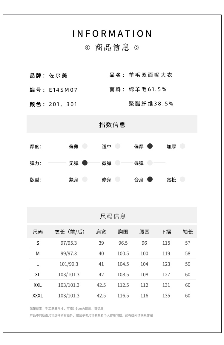 佐尔美2021新款 优雅气质羊毛双面呢大衣女E14SM07
