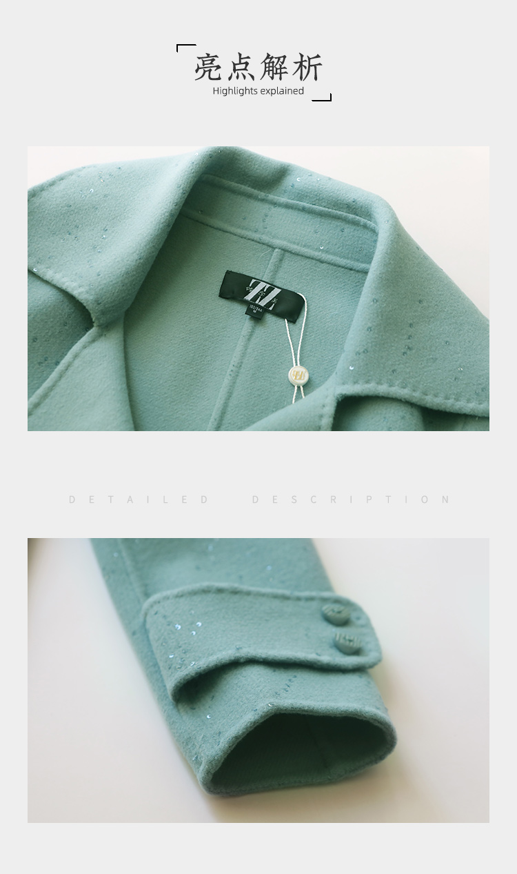 佐尔美冬季女装纯色百搭针织羊毛呢子大衣外套双面呢E64SR02