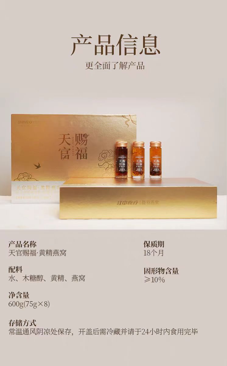 江中食疗颜羽黄精燕窝即食天官赐福孕期鲜炖滋补送礼礼盒