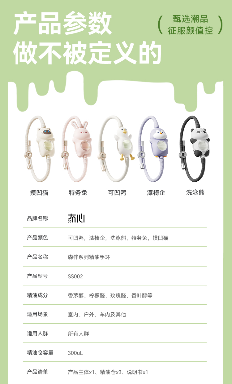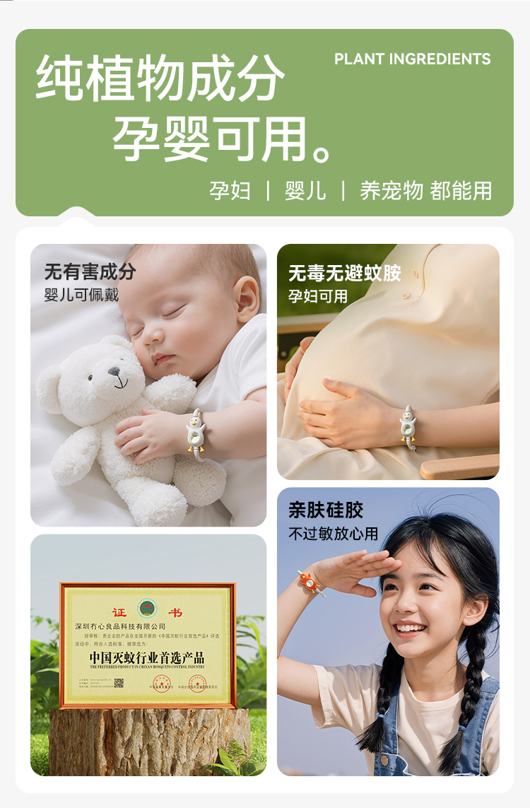 【驱蚊效果看得见】冇心 森伴精油手环 全新升级 时长更久 范围更大 纯植物萃取精油 驱蚊率99.99% 全身防水防汗 随身可佩带 母婴可用SS002