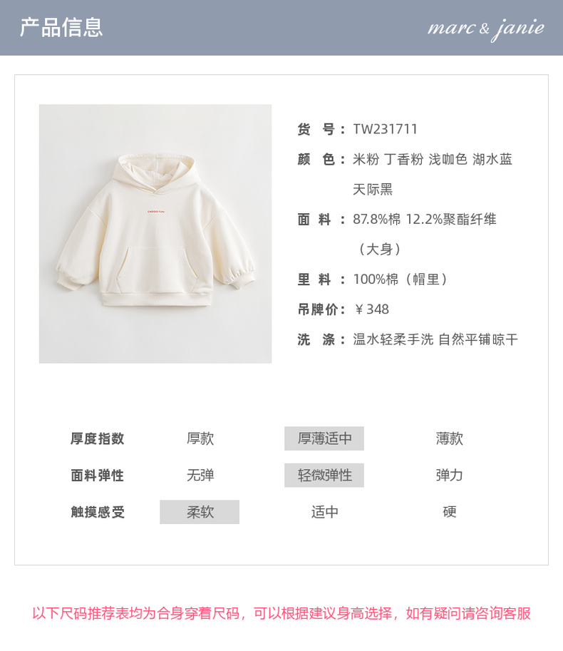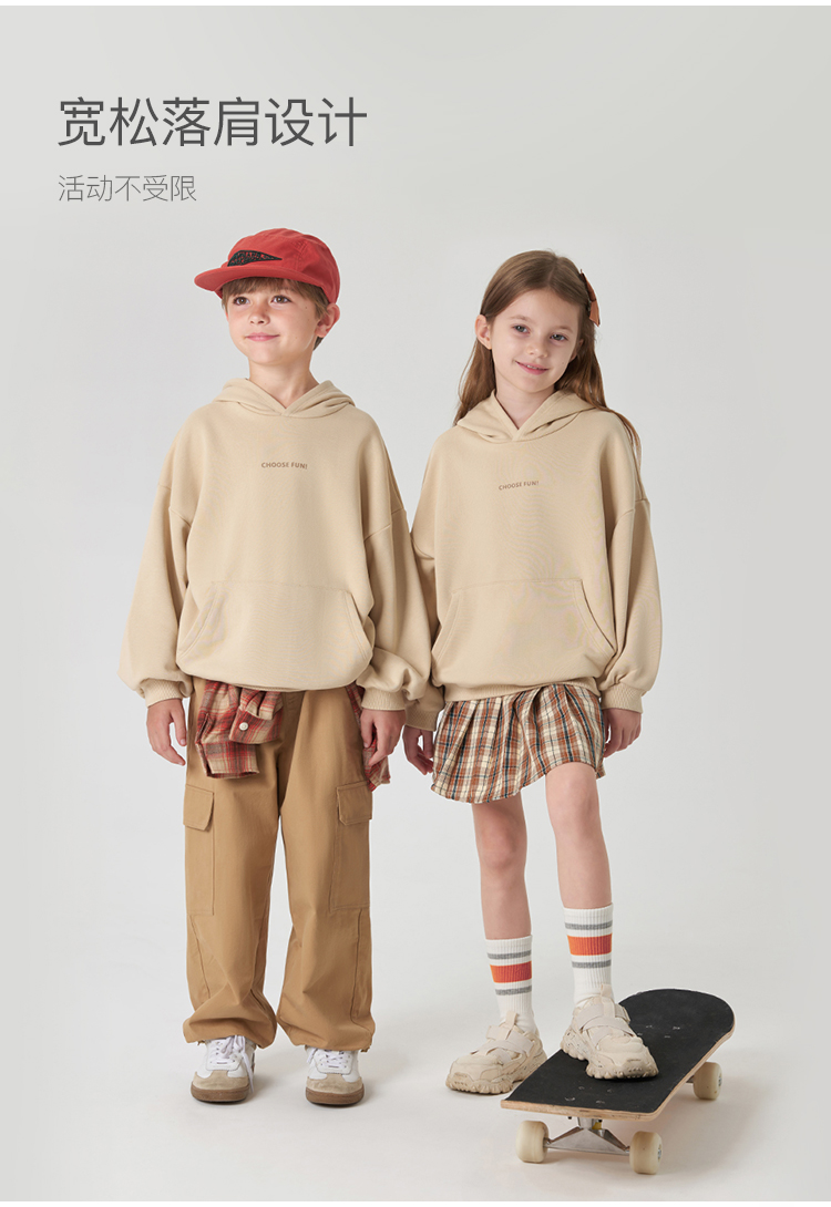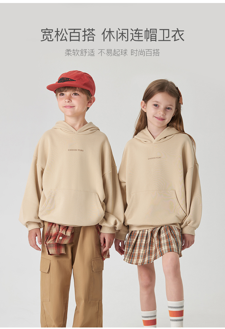 马克珍妮秋装新款男女童超舒棉时尚宽松字母连帽卫衣231711