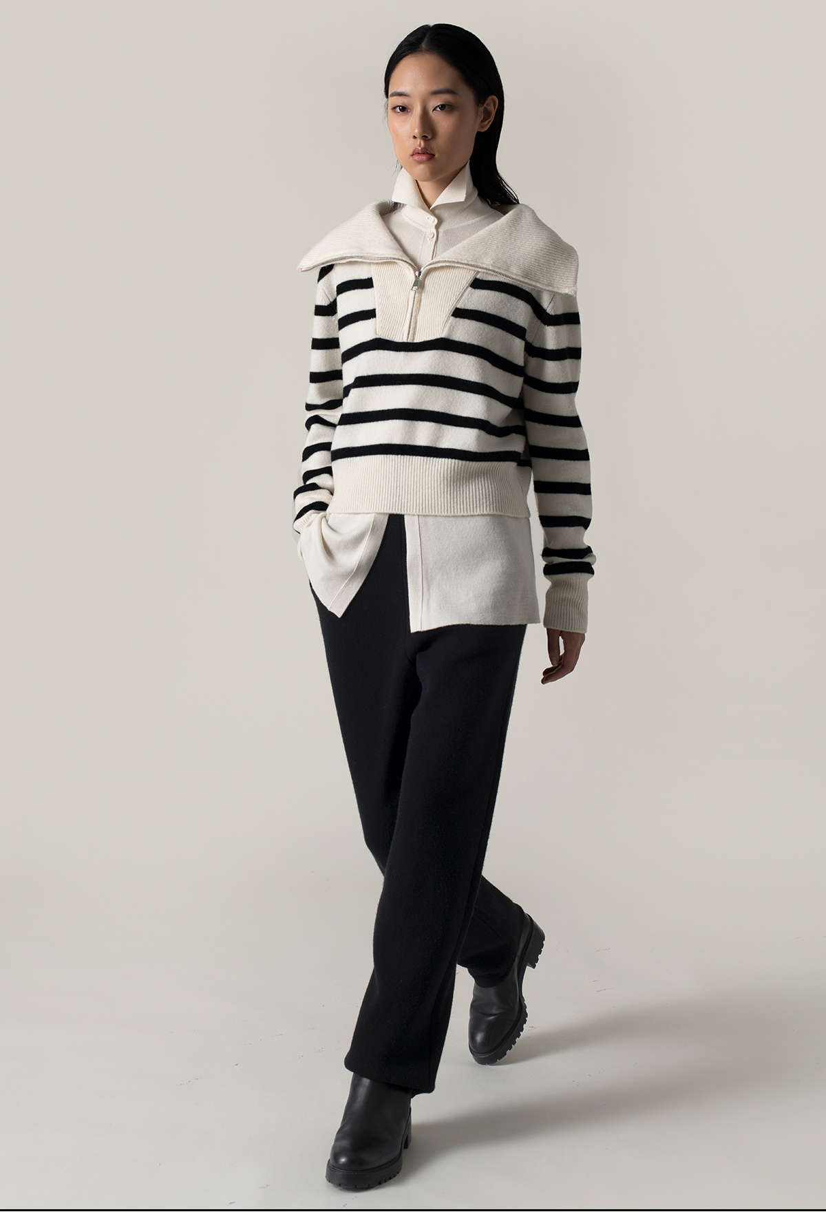 322工房经典再造羊绒羊毛针织衫2022秋冬款拉链翻领加厚毛衣A952