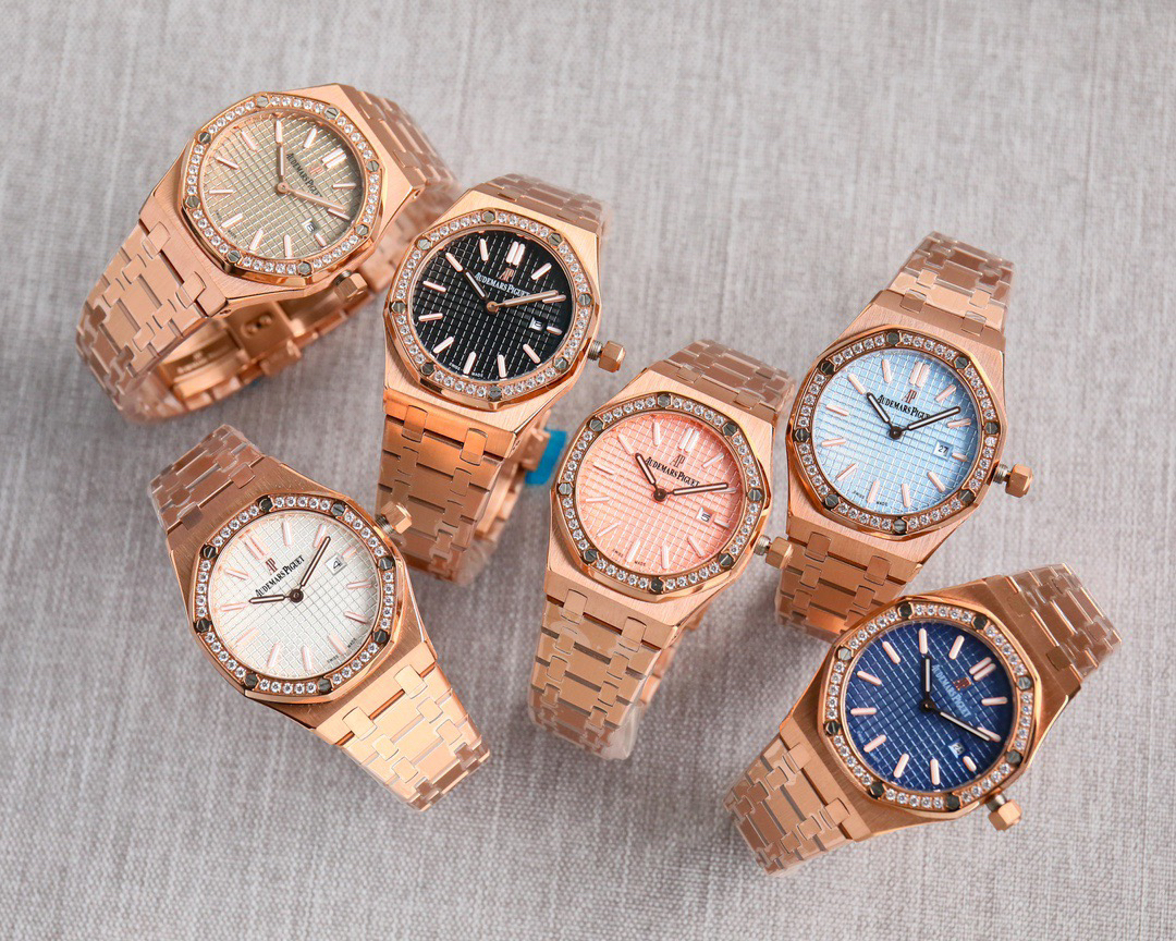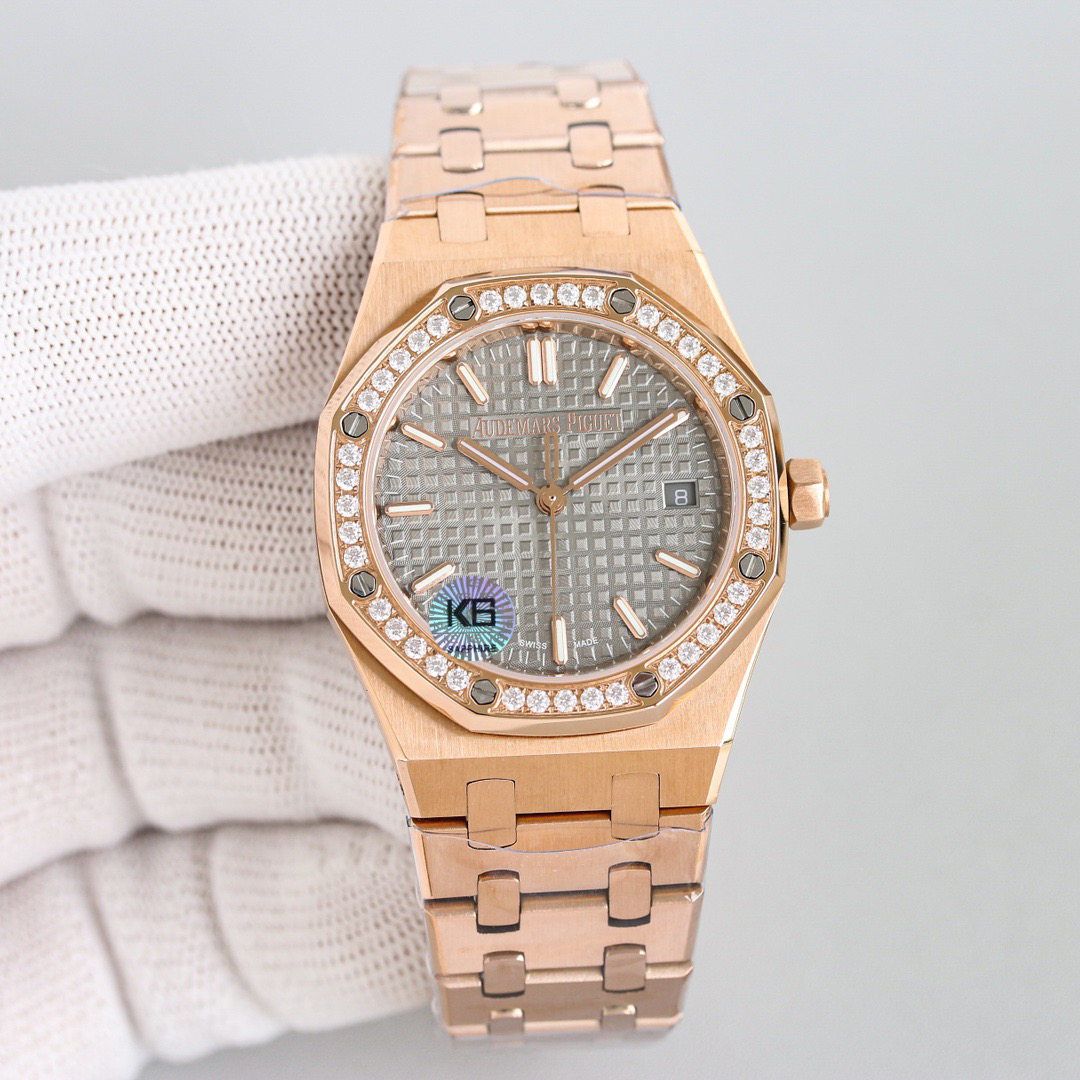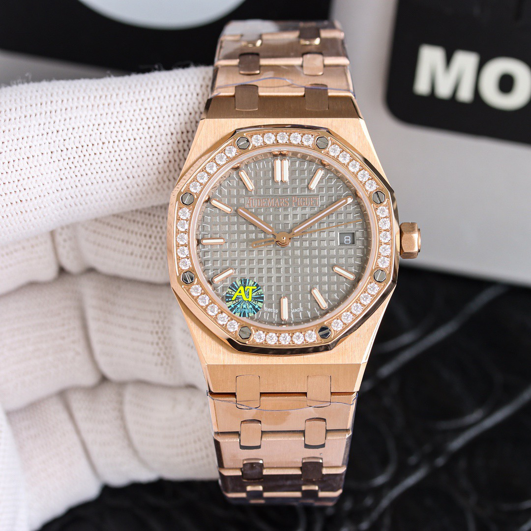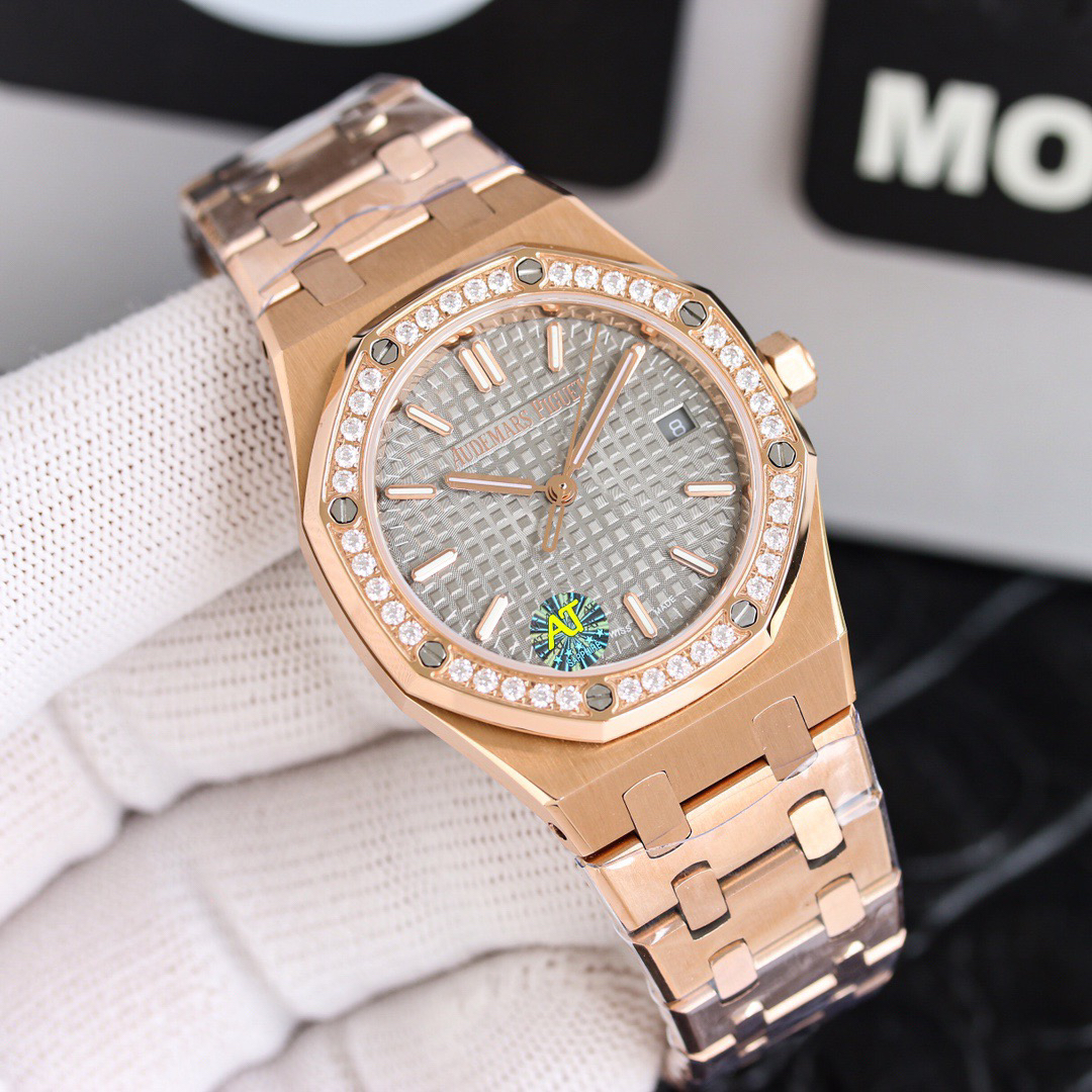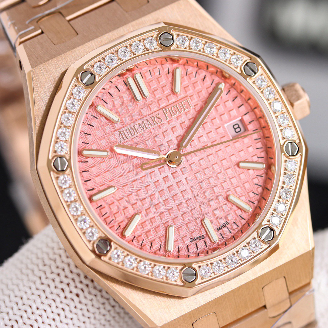 Noob official➕新女款AP 爱彼皇家橡树系列77350 77351型号机械腕表!直径34mm。搭载Calibre 5800自动上链机芯,采用该款式特别设计的玫瑰金自动摆陀(零故障)‼️‼️