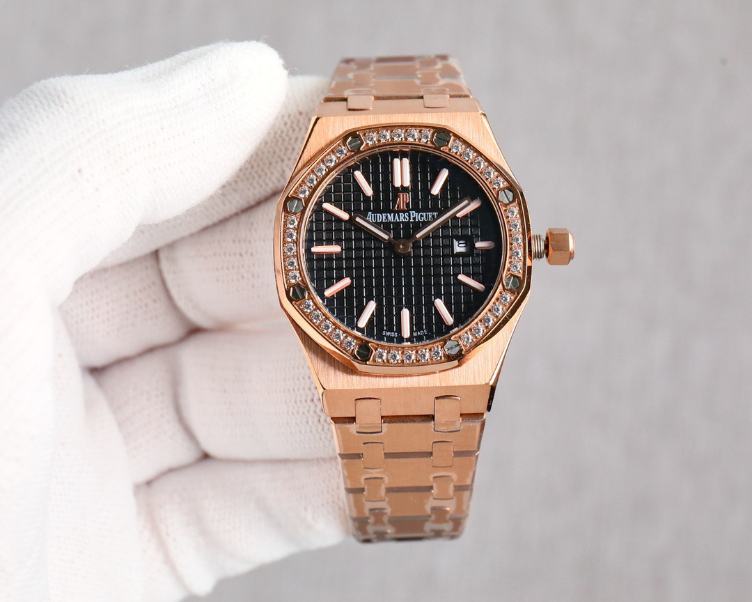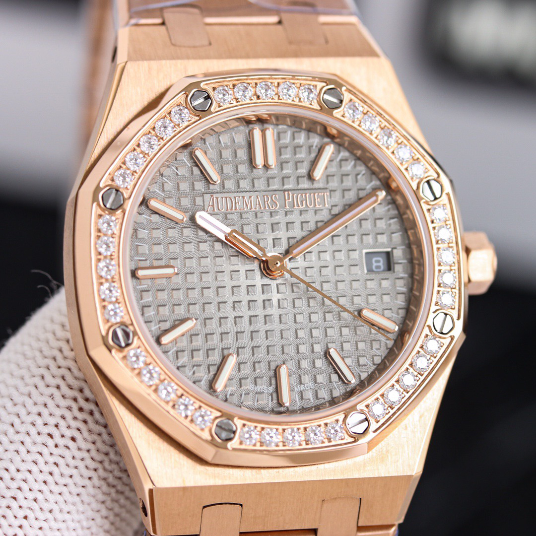 ➕Noob official➕新女款AP 爱彼皇家橡树系列77350 77351型号机械腕表!直径34mm。搭载Calibre 5800自动上链机芯,采用该款式特别设计的玫瑰金自动摆陀(零故障)‼️‼️Noob official➕新女款AP 爱彼皇家橡树系列77350 77351型号机械腕表!直径34mm。搭载Calibre 5800自动上链机芯,采用该款式特别设计的玫瑰金自动摆陀(零故障)!整个手表 基于正品original原版como的super copy版本 做工精细 打磨细腻乃精品中的精品‼️全新表壳搭配防炫目蓝宝石水晶镜面。表盘格纹细节清晰,搭配荧光立体表针,采用进口夜光填充,更持久。钢带每个细节确保吻合正品,最人性化的对标正品头粒缓冲。 所有参数、材质皆采用正品扫描打磨而成!再现传奇!为佩戴者演绎出别样的优雅格调!Noob official ➕ New AP Audemars Piguet Royal Oak Series 77350 77351 Mechanical Watch for Women! Diameter 34mm. Equipped with Calibre 5800 automatic winding movement and specially designed rose gold automatic pendulum (zero malfunction) for this style! The entire watch is based on the super copy version of the authentic original COMO, with fine craftsmanship and delicate polishing, making it one of the finest pieces in the world ‼️ New case with anti glare sapphire crystal mirror. The dial pattern details are clear, paired with fluorescent three-dimensional hands, and filled with imported night light for longer durability. Every detail of the steel strip ensures that it matches the genuine product, providing the most humanized benchmark for genuine product head cushioning. All parameters and materials are scanned and polished using genuine products! Revive the legend! Interpret a unique elegant style for the wearer!