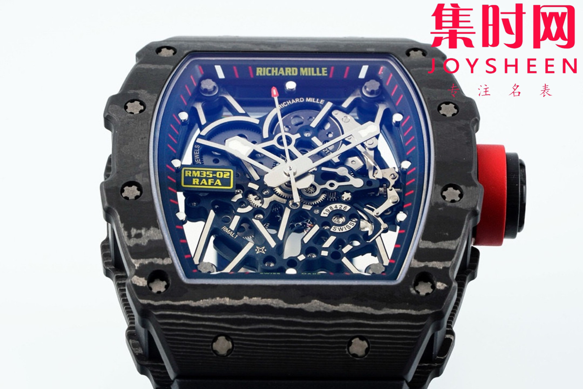 APS理查德米勒新品RM35-02 理查德米尔RM035-02 男士腕表 与网球名将拉斐尔·纳达尔(Rafael Nadal)合作的表款,专为高强度运动设计,延续了品牌"极致轻量化"和"抗冲击"的理念。而RM35-02 进一步优化了机芯结构和材质。