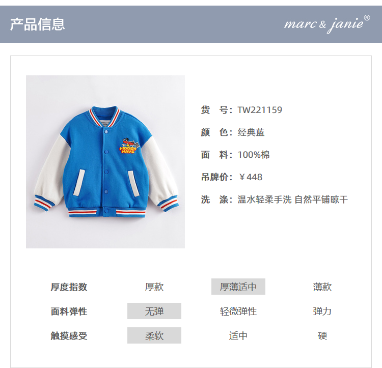 马克珍妮秋装新款 男童经典美式棒球服 儿童外套221159