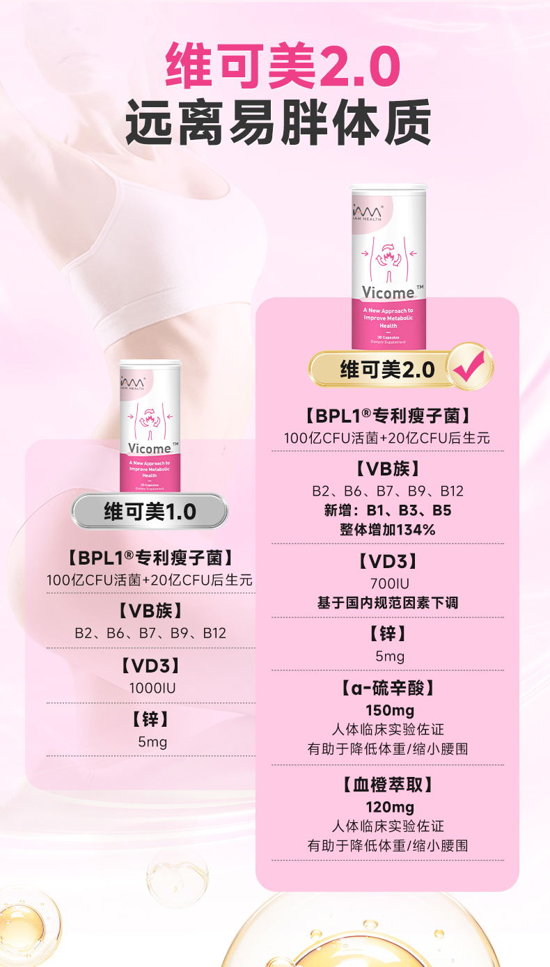 2.0升级版来了 新加坡IAM Health维可美Vicome体重管理减脂益生菌