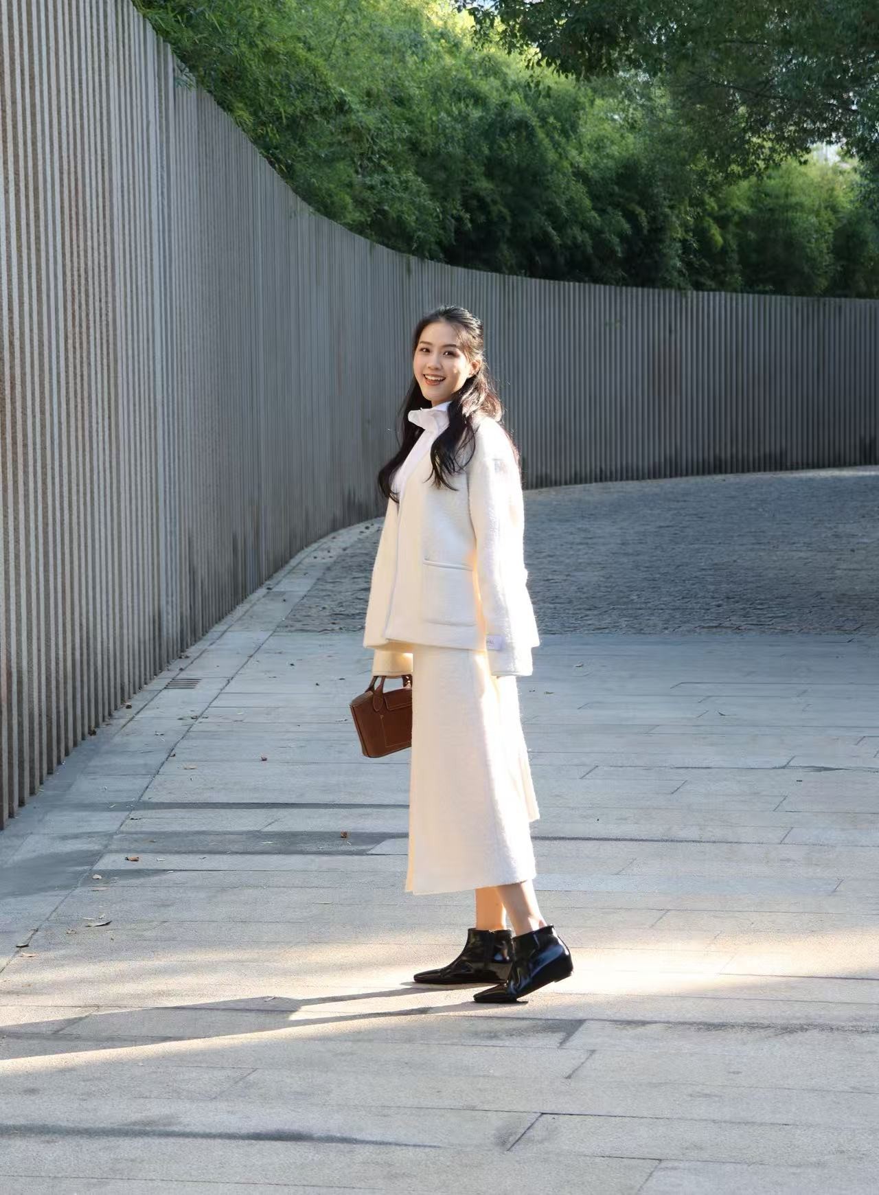 素简藏柔|通勤百搭开叉羊毛半裙