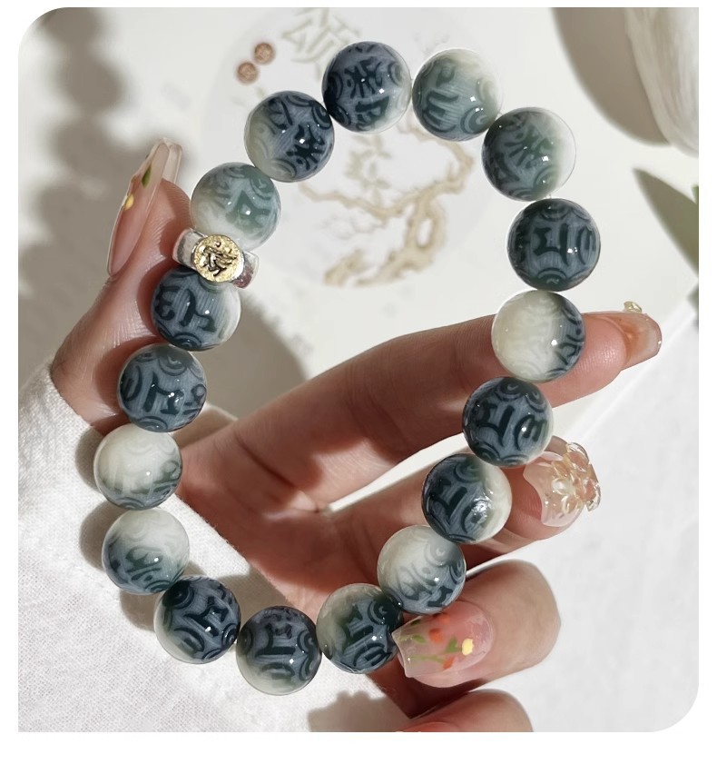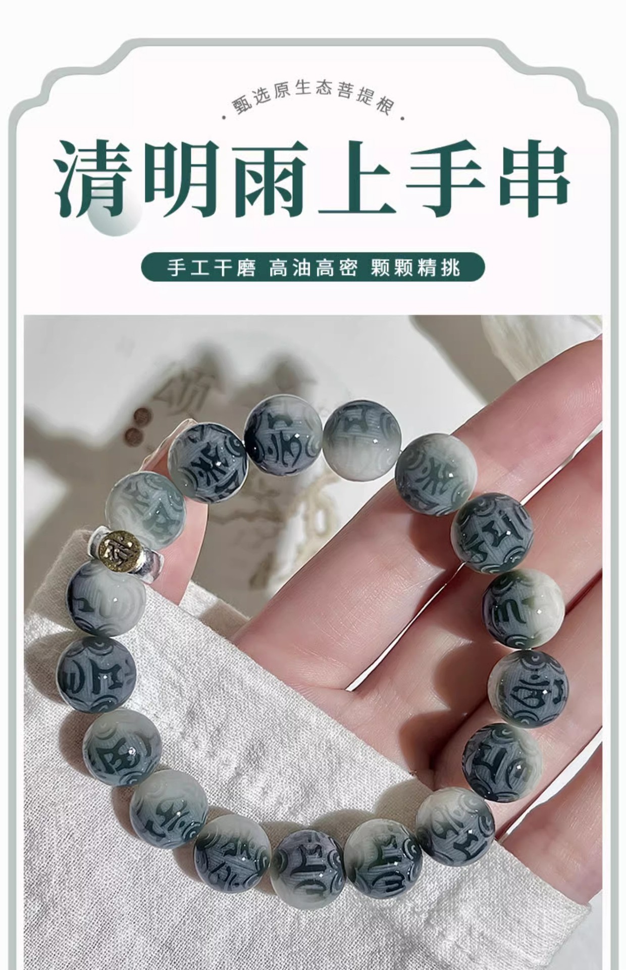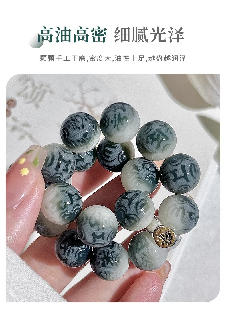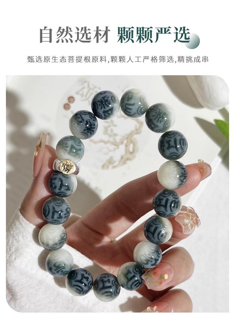 【甄选天然菩提根❗️手工干磨高油高密】山水如画六字箴言菩提手串男十二生肖文玩佛珠菩提子盘玩手链。jc