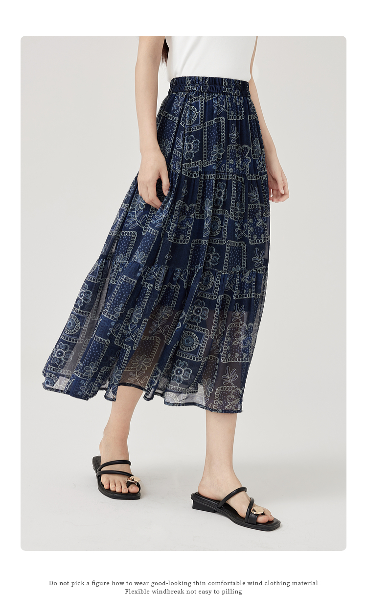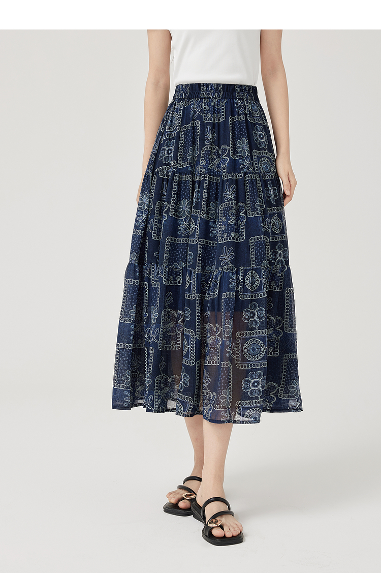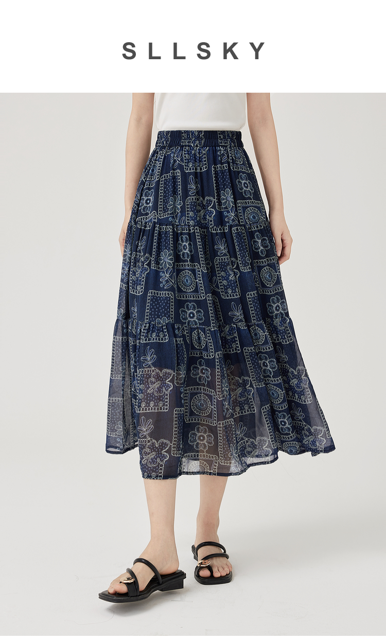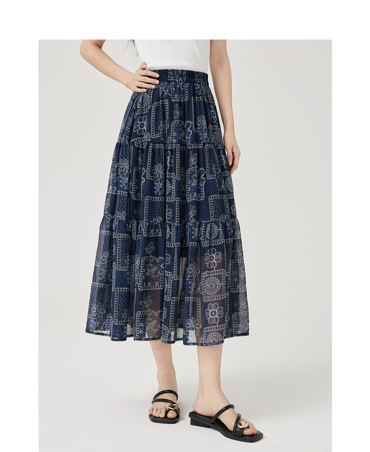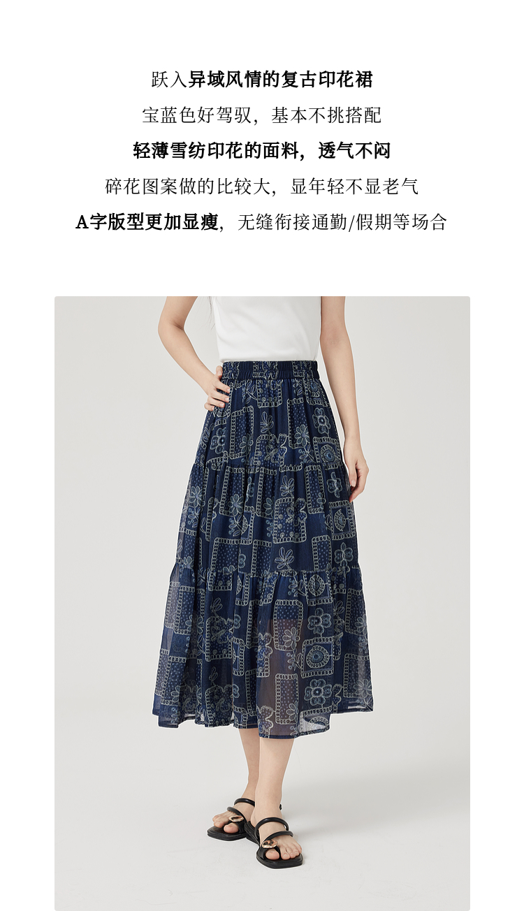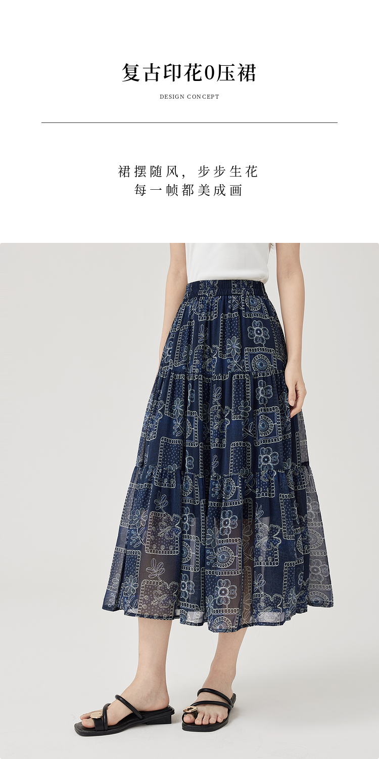 【07/23新品】熙世界0压感复古印花半身裙女夏季2025年新款高腰显瘦a字雪纺半裙
