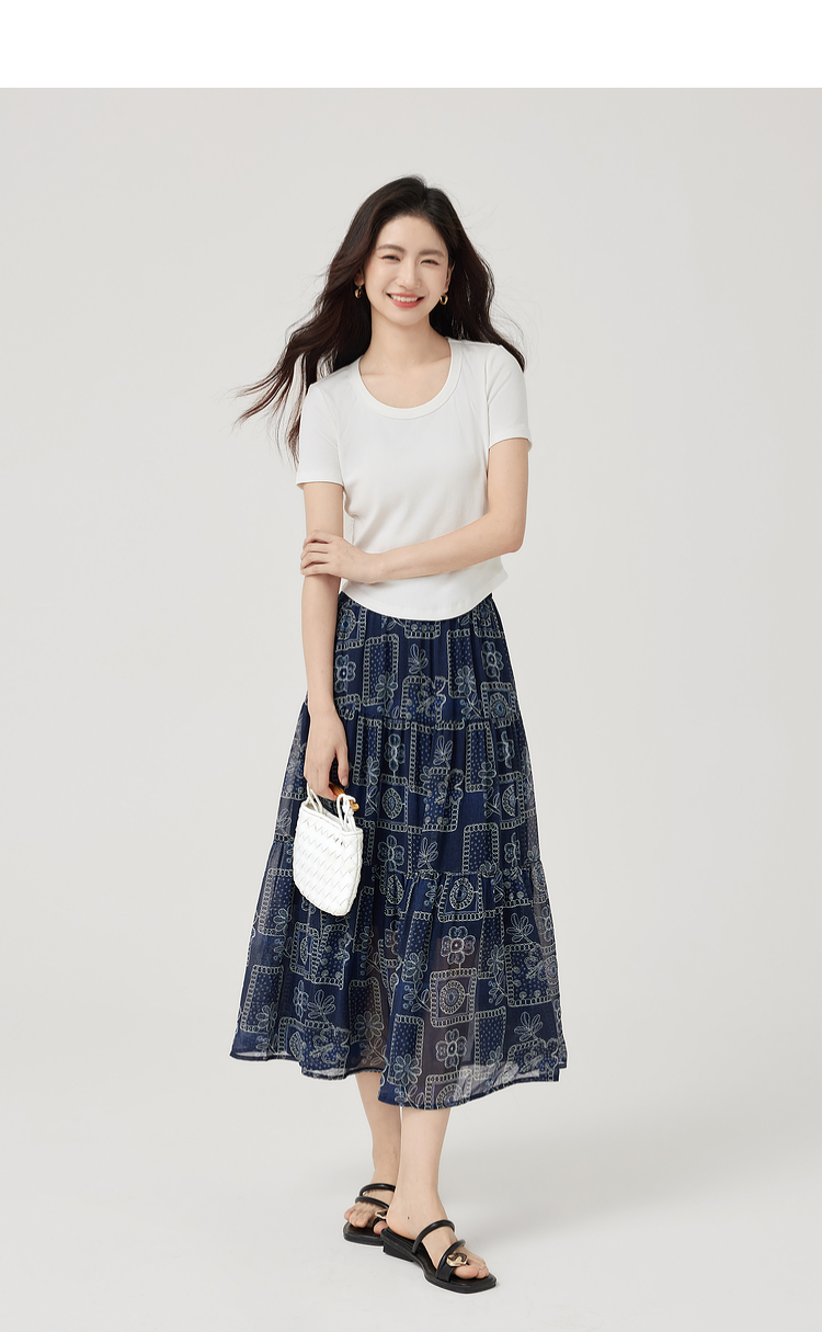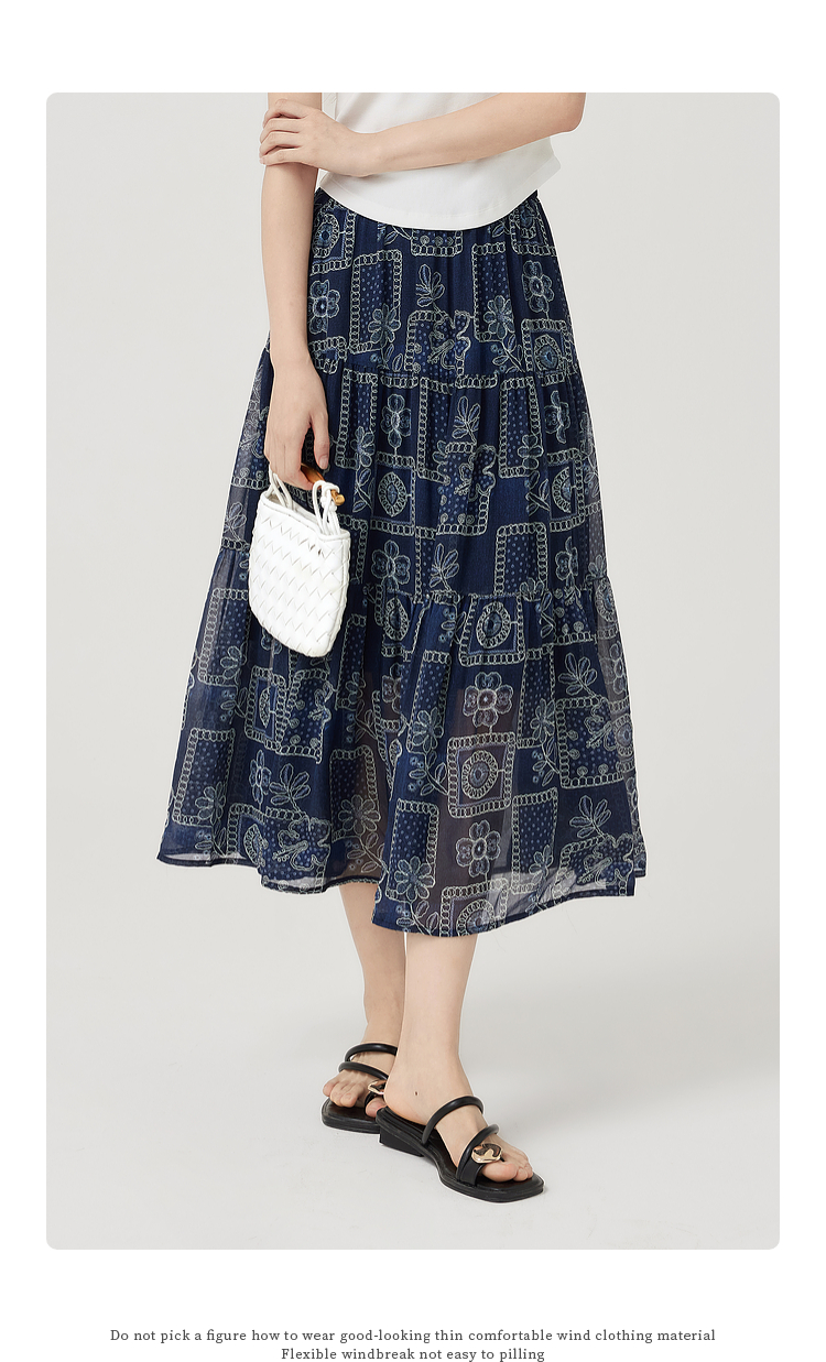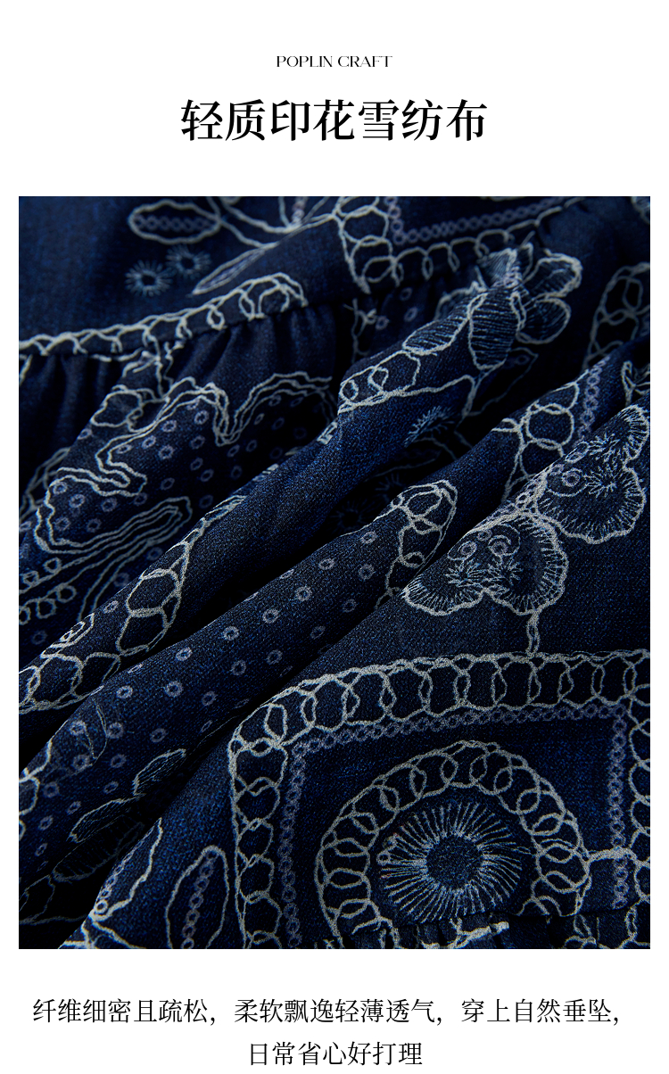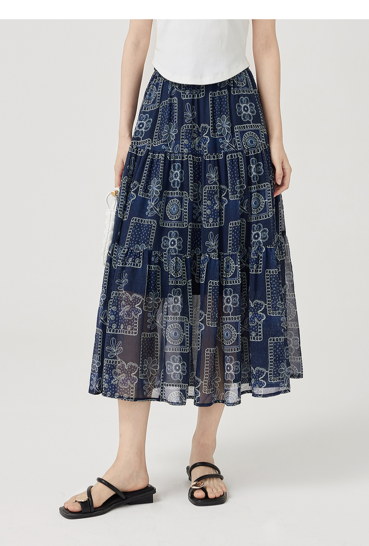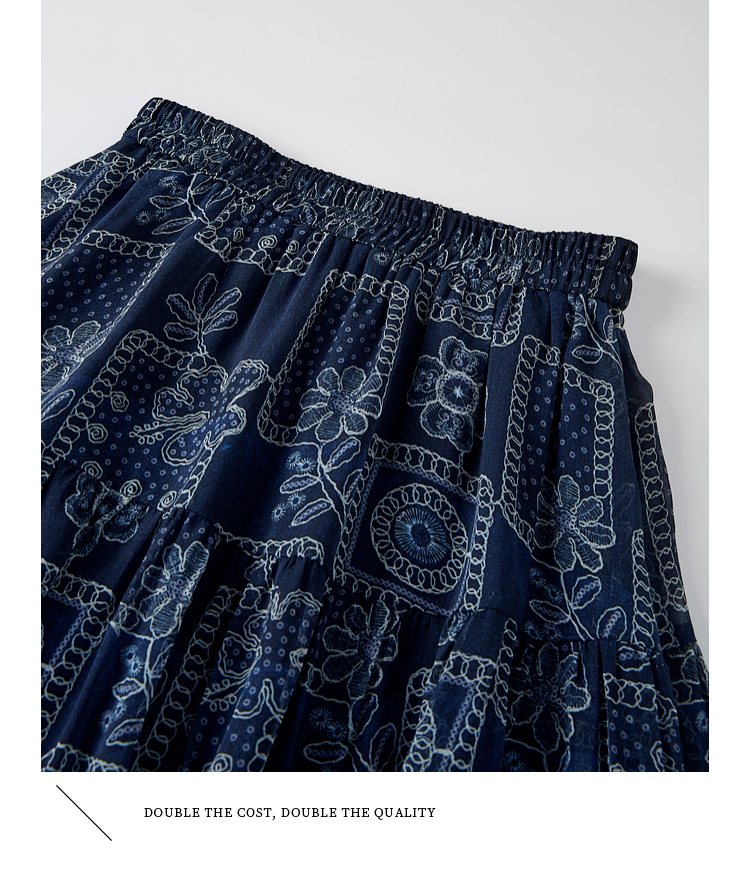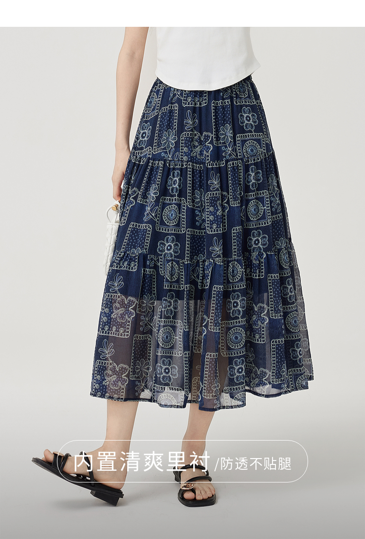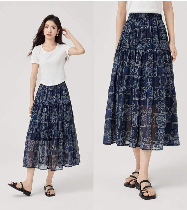 【07/23新品】熙世界0压感复古印花半身裙女夏季2025年新款高腰显瘦a字雪纺半裙