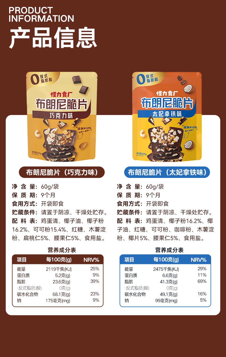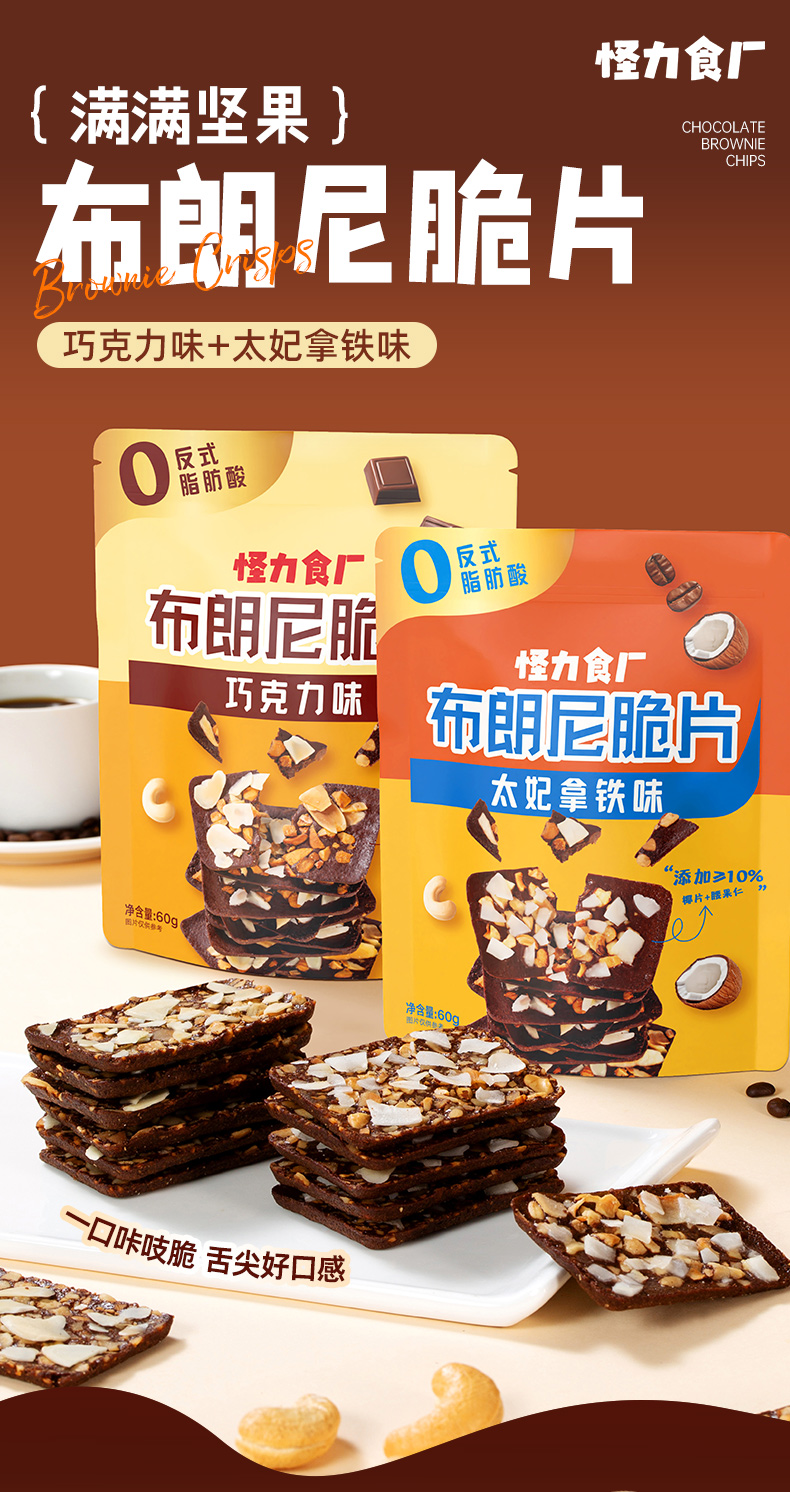 怪力食厂 布朗尼脆片巧克力味/太妃拿铁味60g*3袋