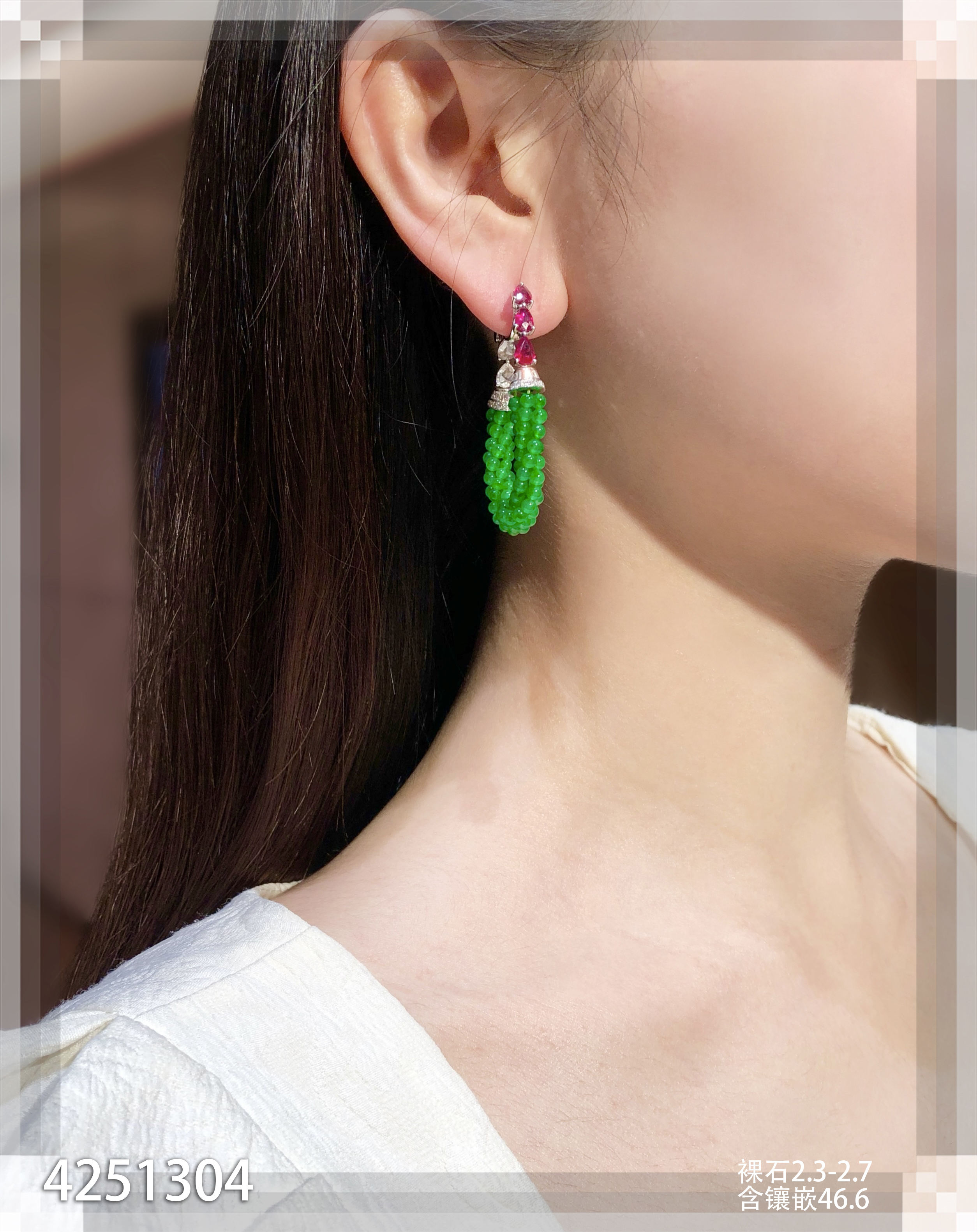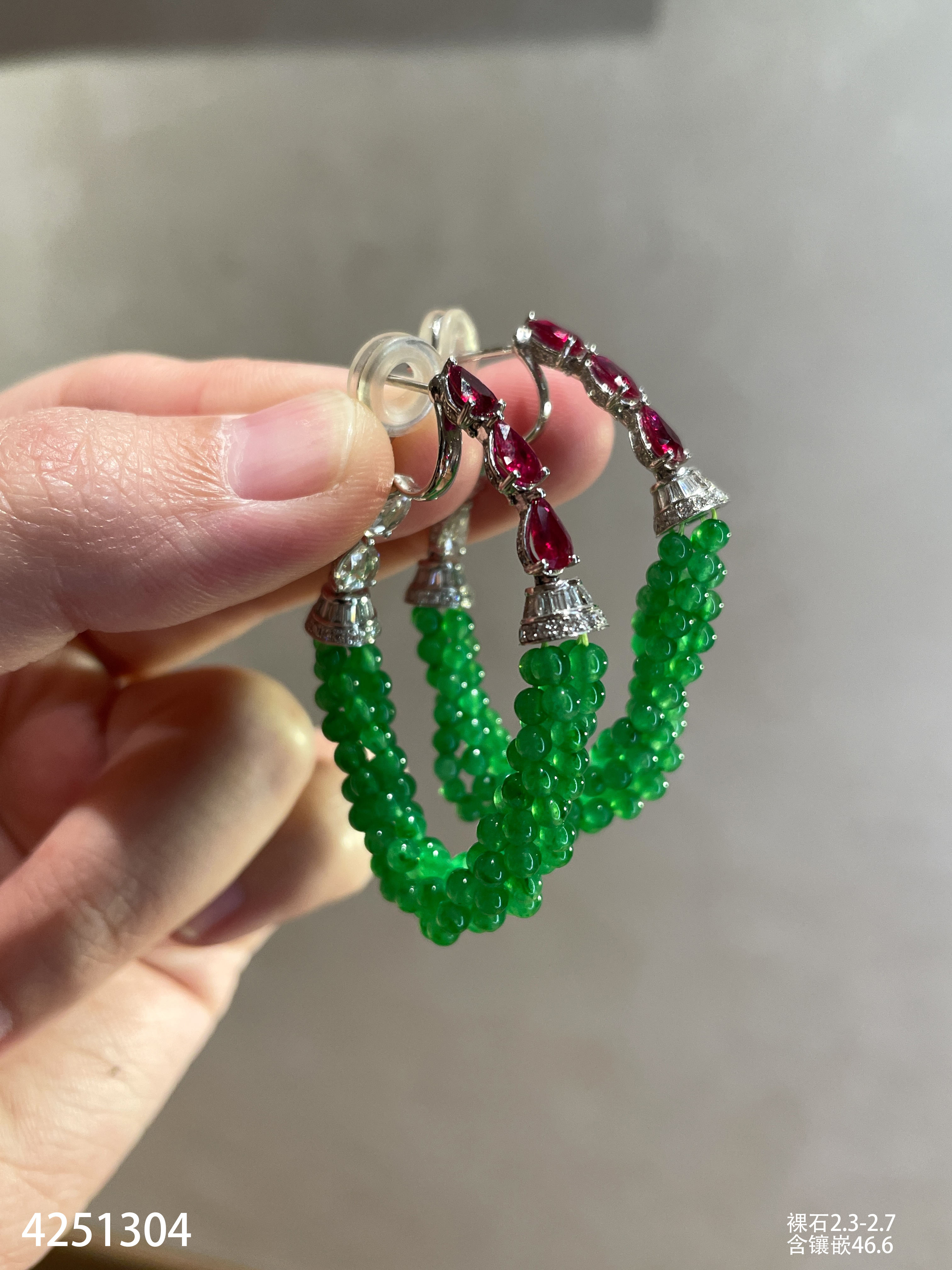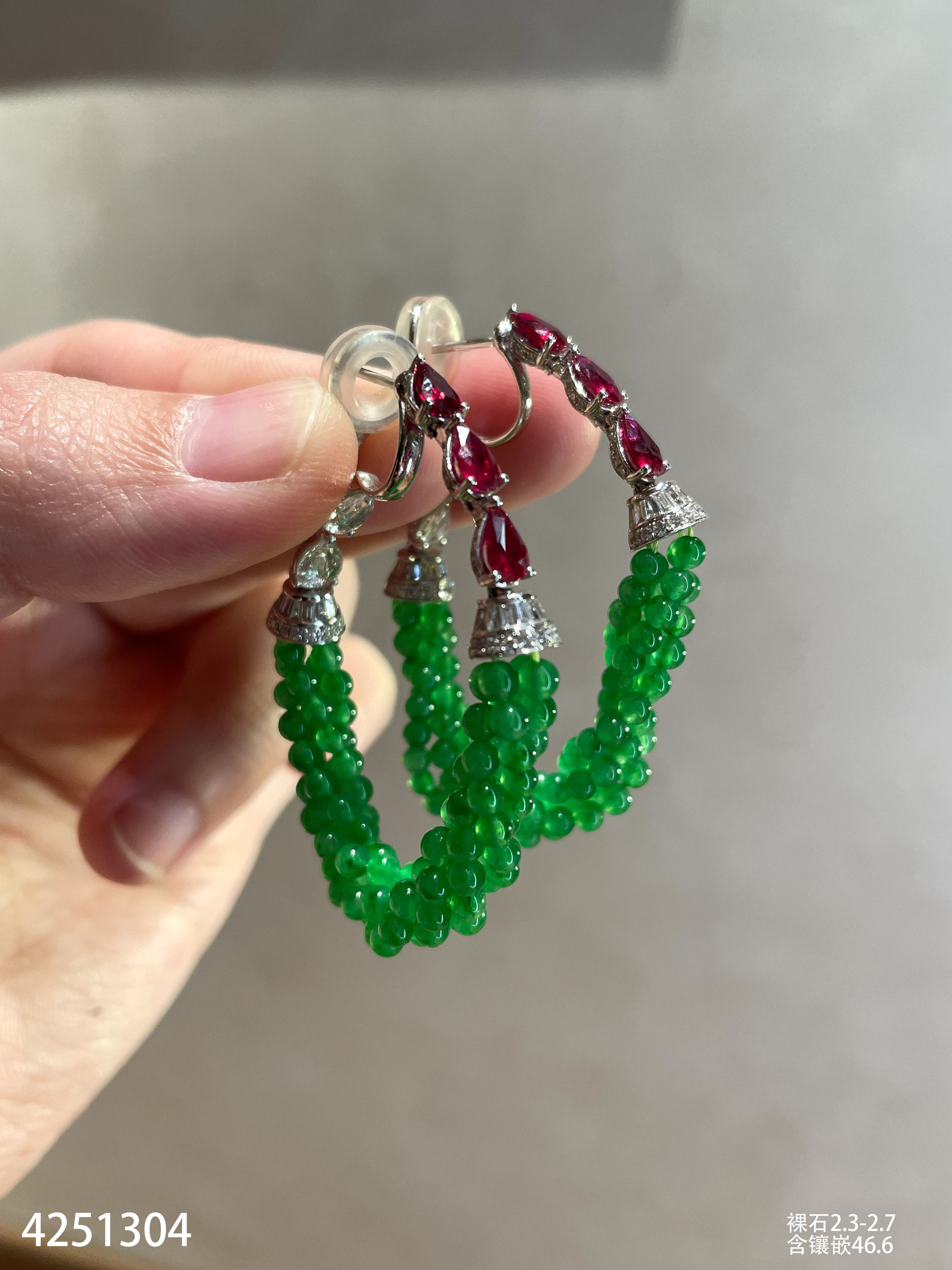 玻璃种艳绿小米珠耳环【4251304】具体价格微信咨询