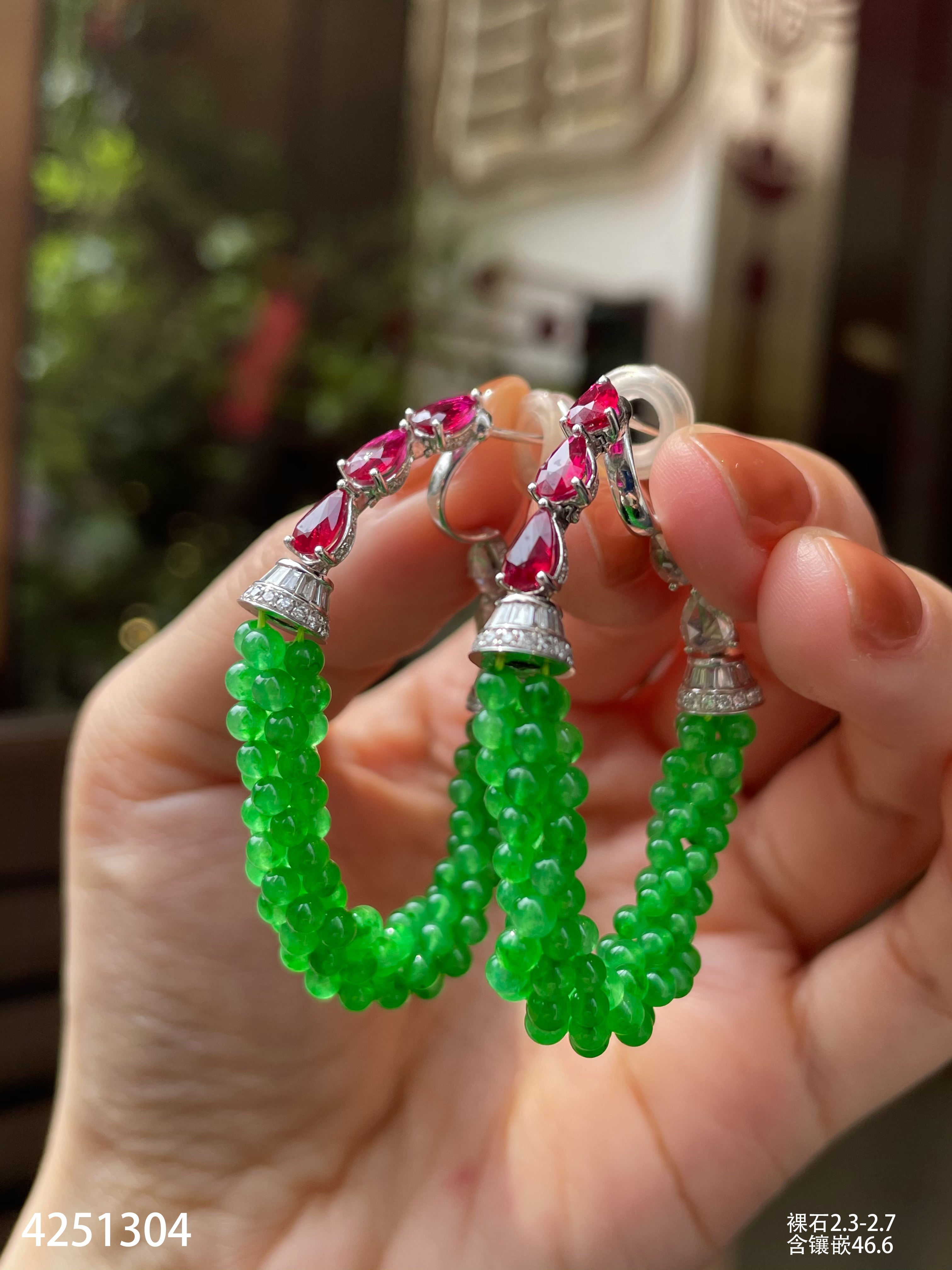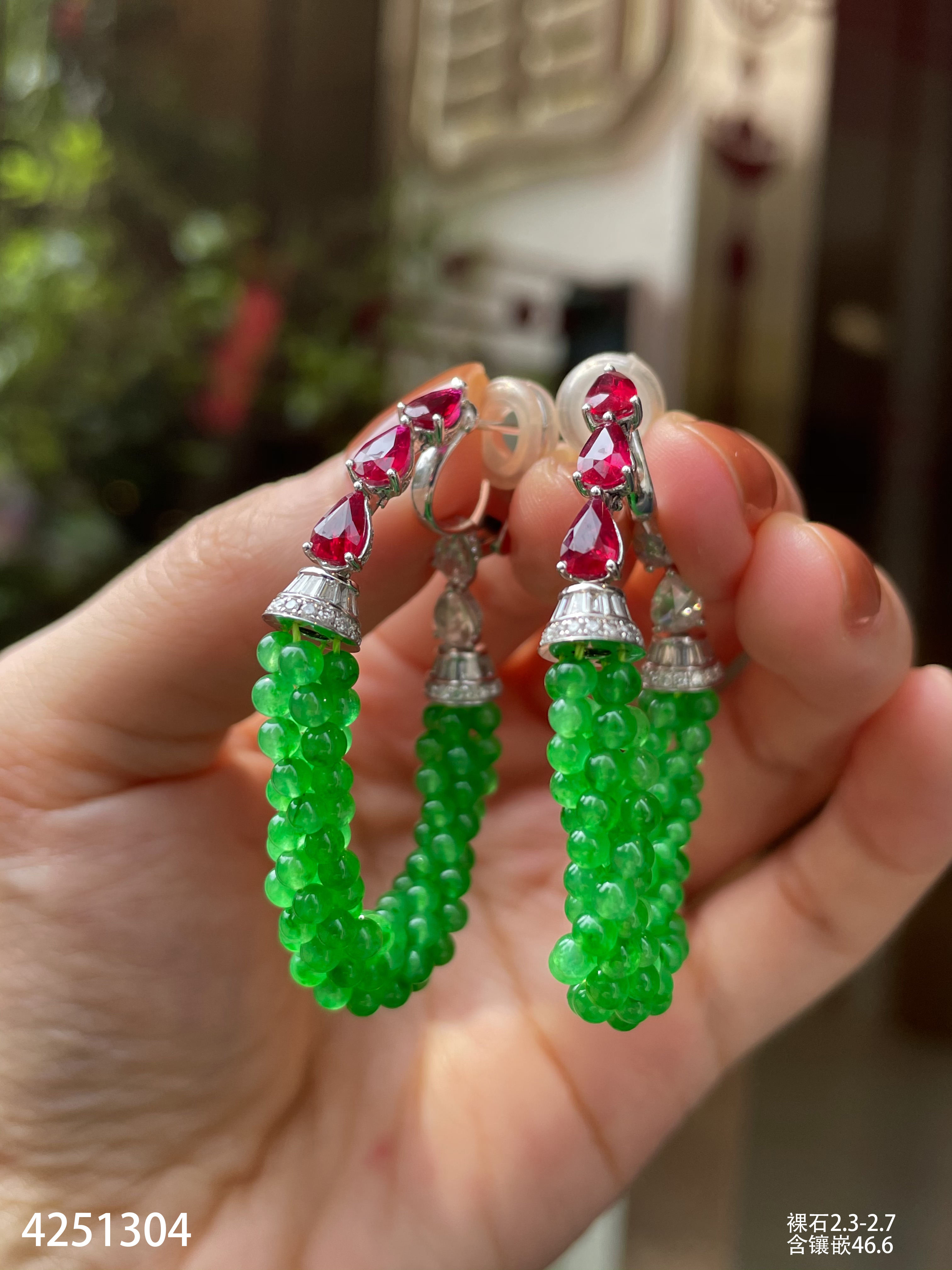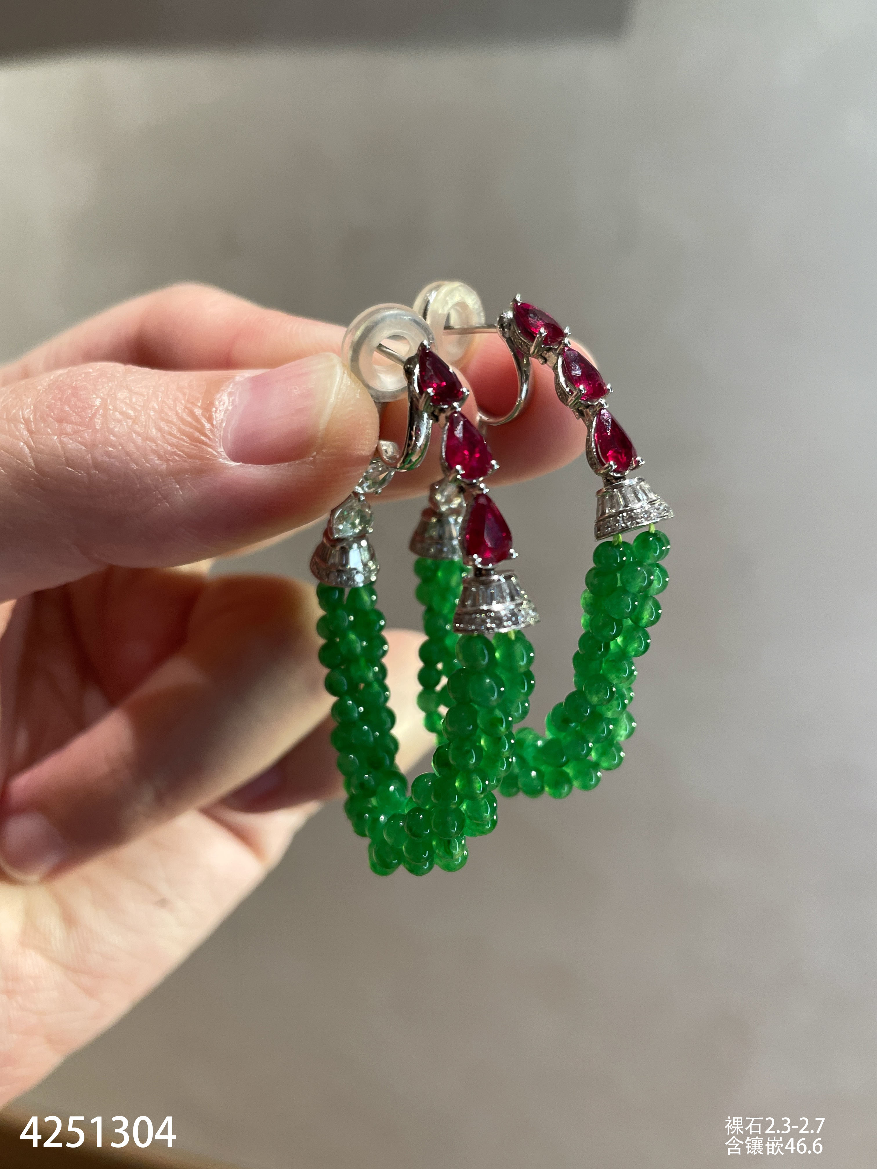 玻璃种艳绿小米珠耳环【4251304】具体价格微信咨询