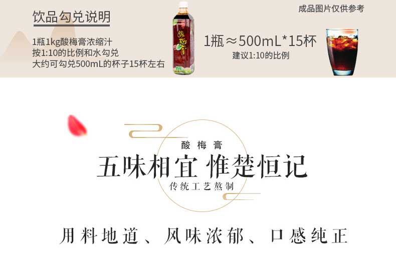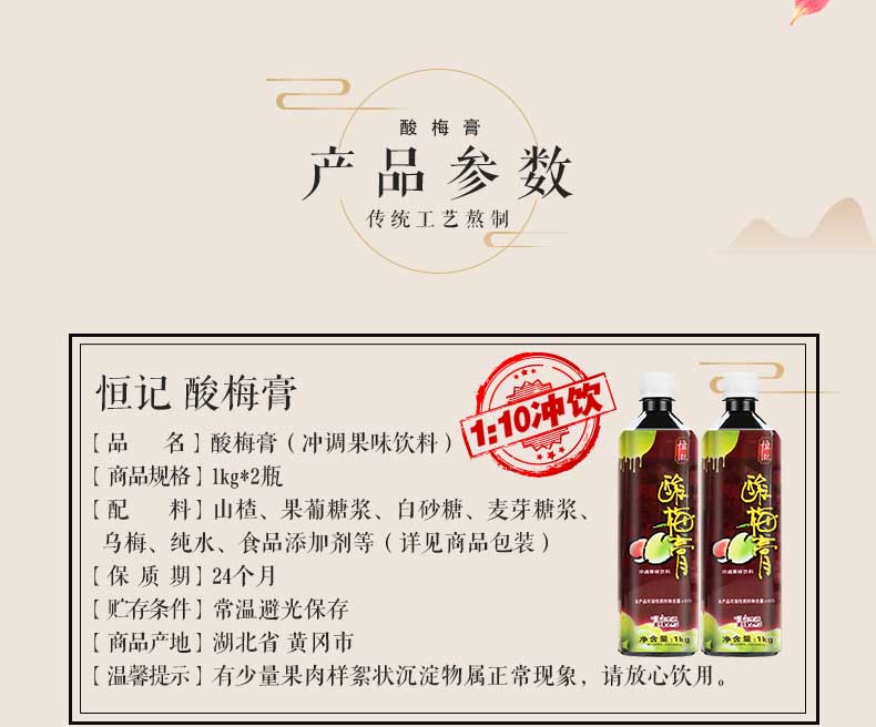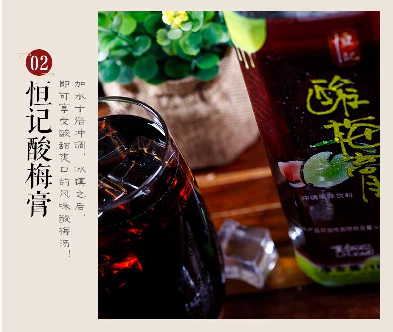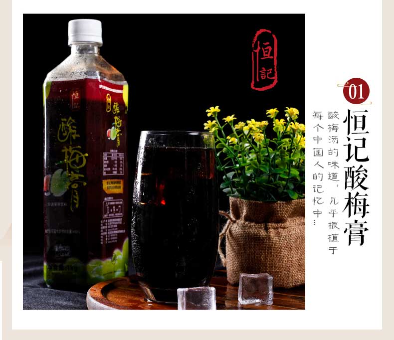 恒记 酸梅膏 浓缩果汁饮料 酸梅汤原料 1kg*2瓶