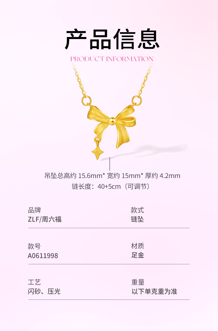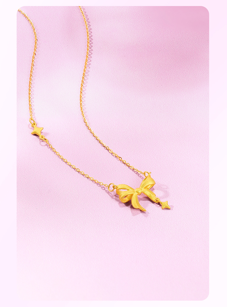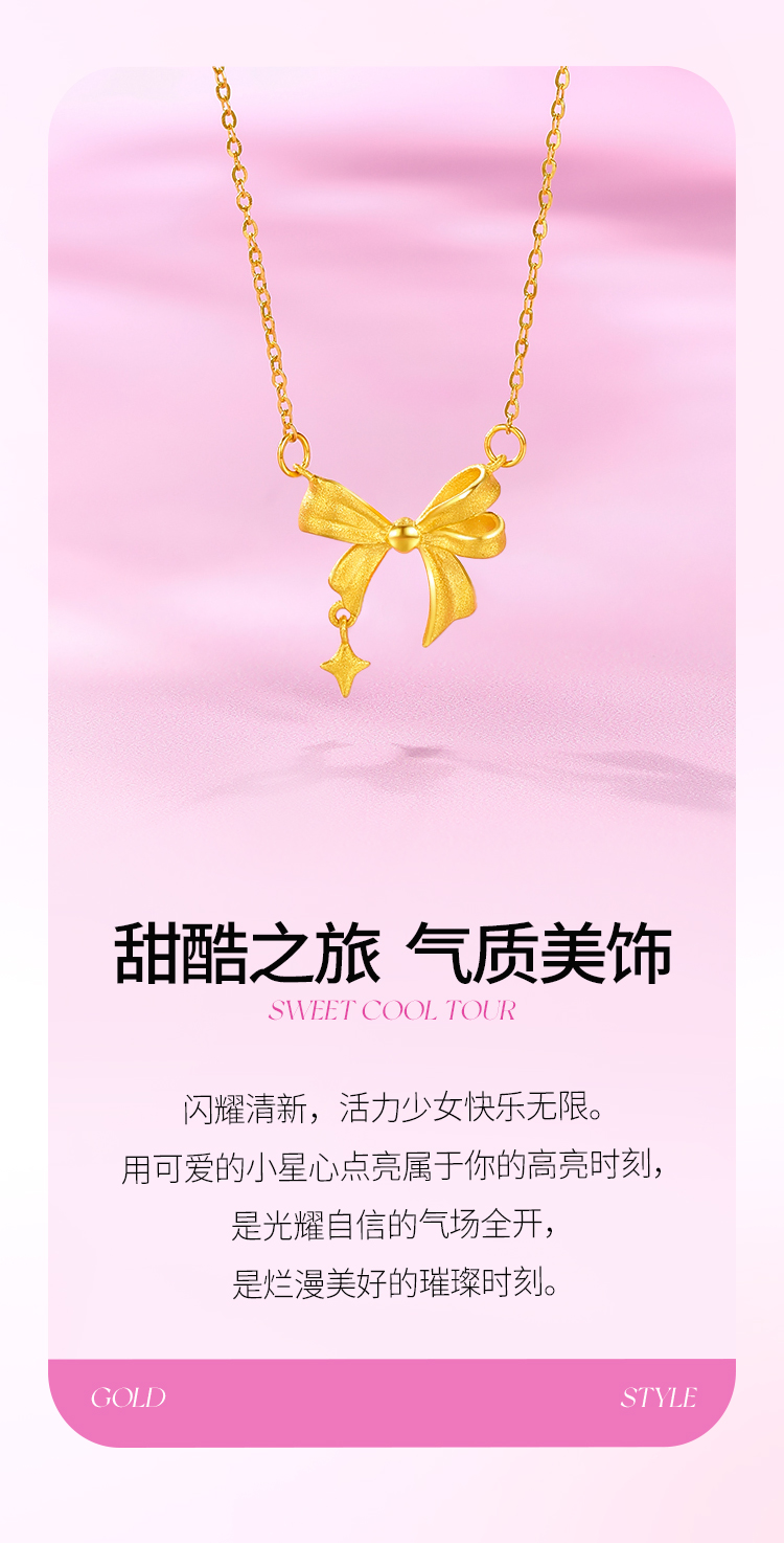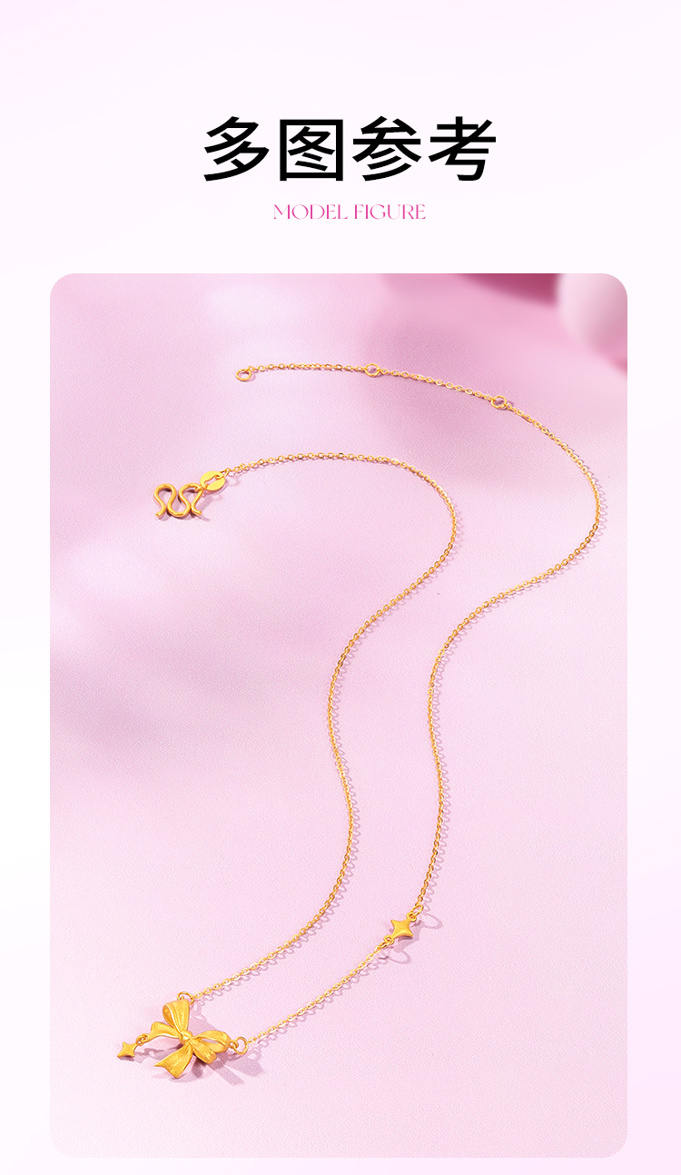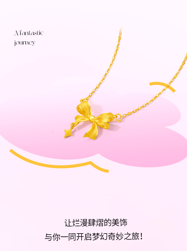 周六福黄金星梦蝴蝶结项链女足金计价甜酷少女送女友送女友礼物