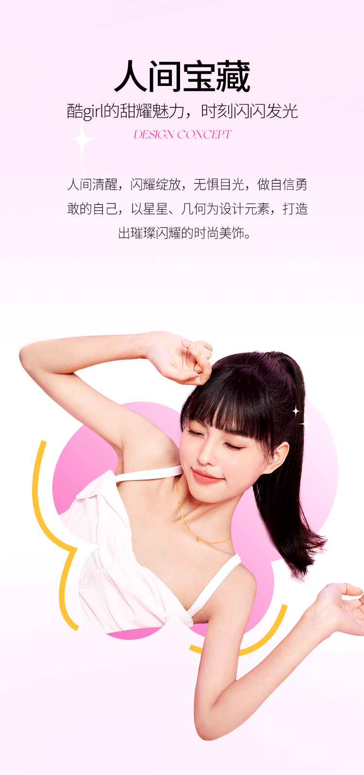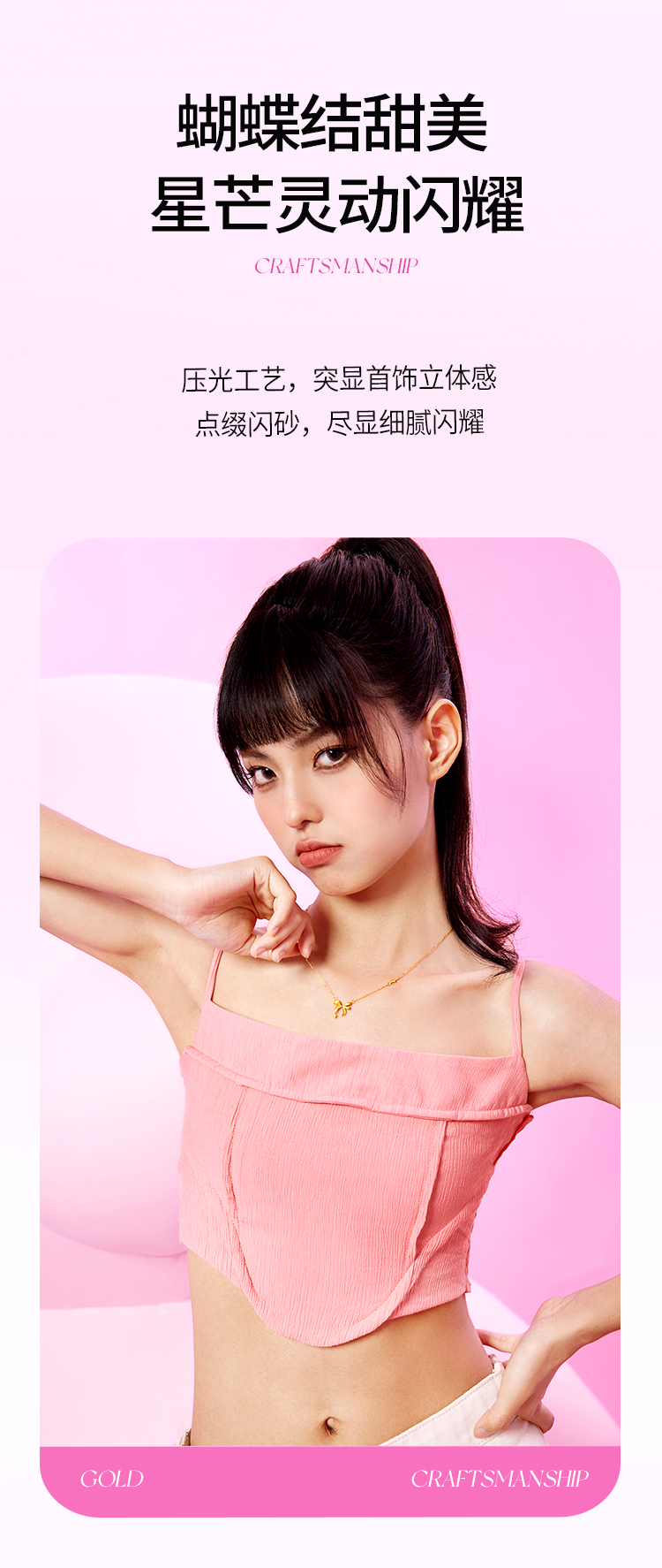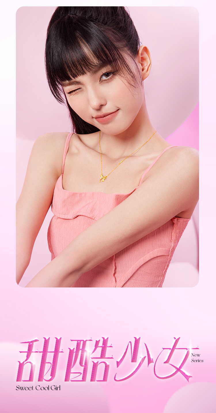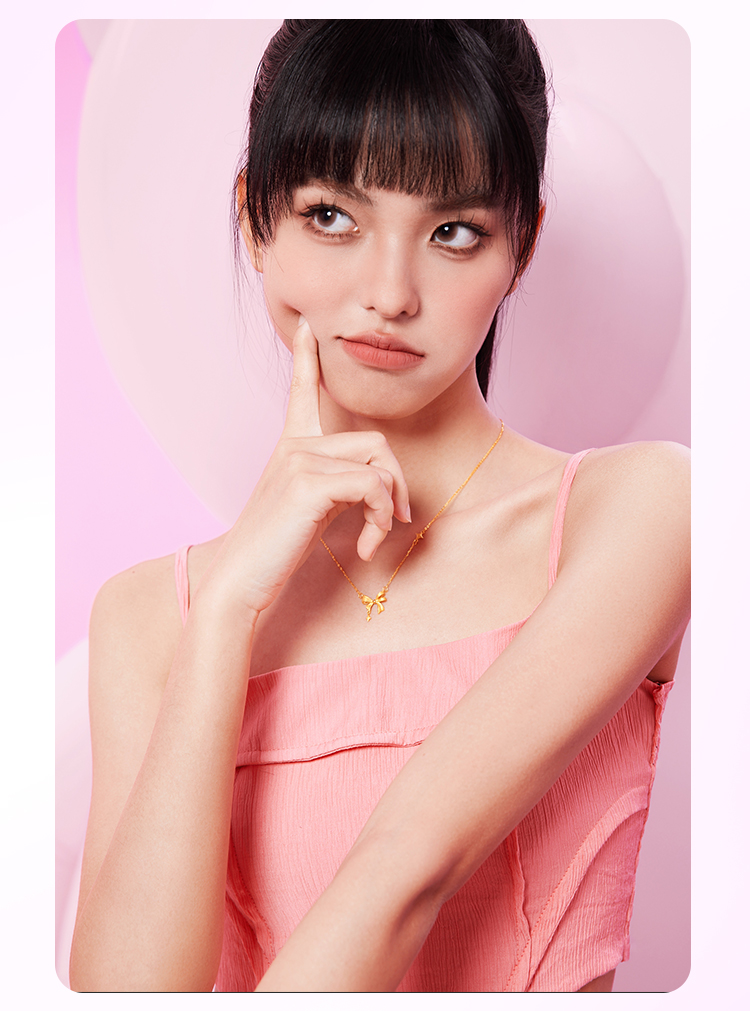 周六福黄金星梦蝴蝶结项链女足金计价甜酷少女送女友送女友礼物