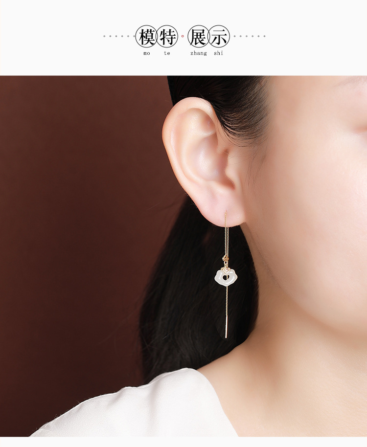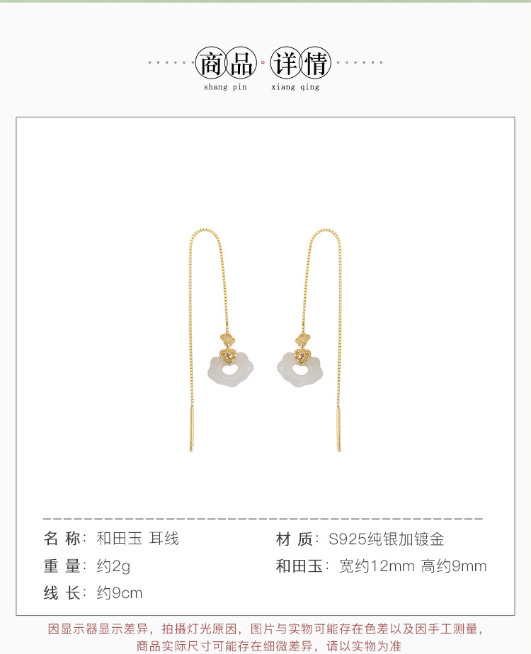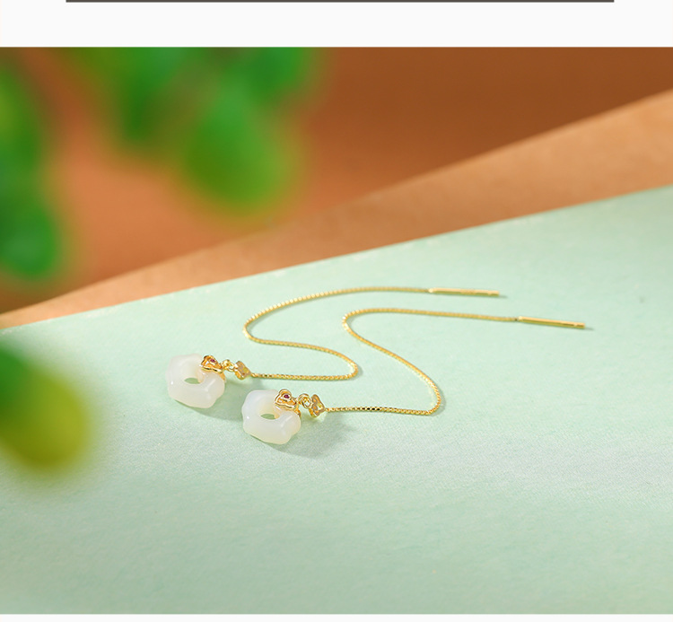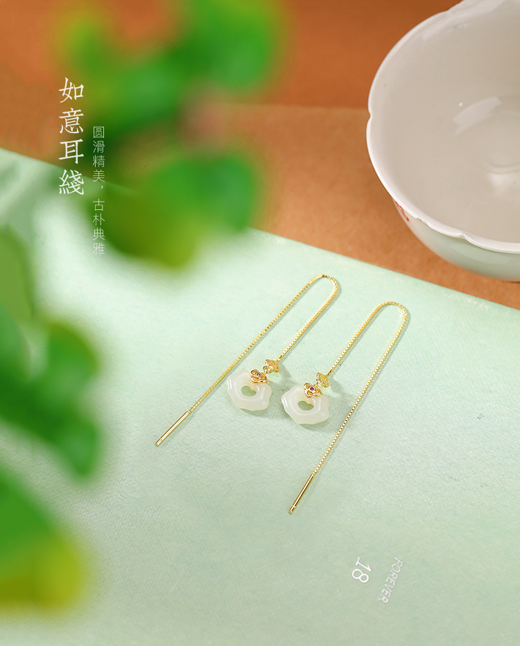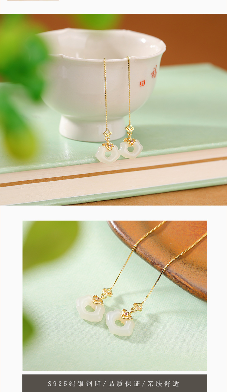 【如意归】S925银镀金和田玉复古吉祥如意镂空耳线【CW-EX00109】