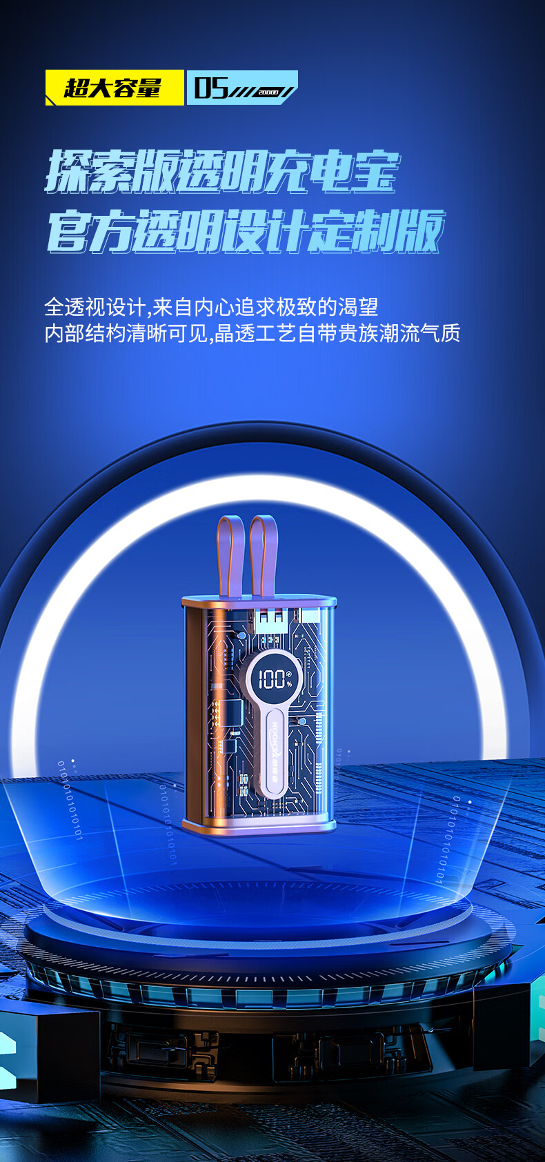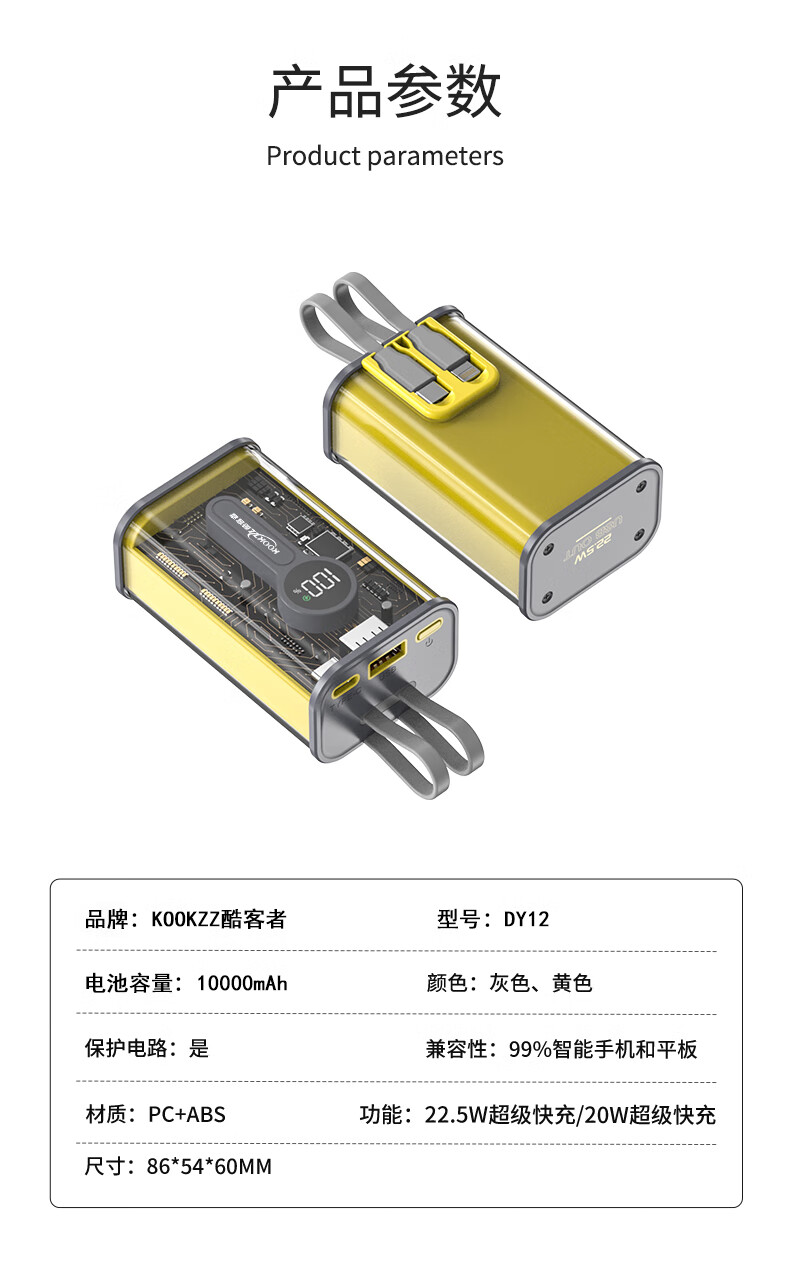 【分仓直发包邮】KOOKZZ酷客者透明超级快充移动电源(可上飞机)DY12