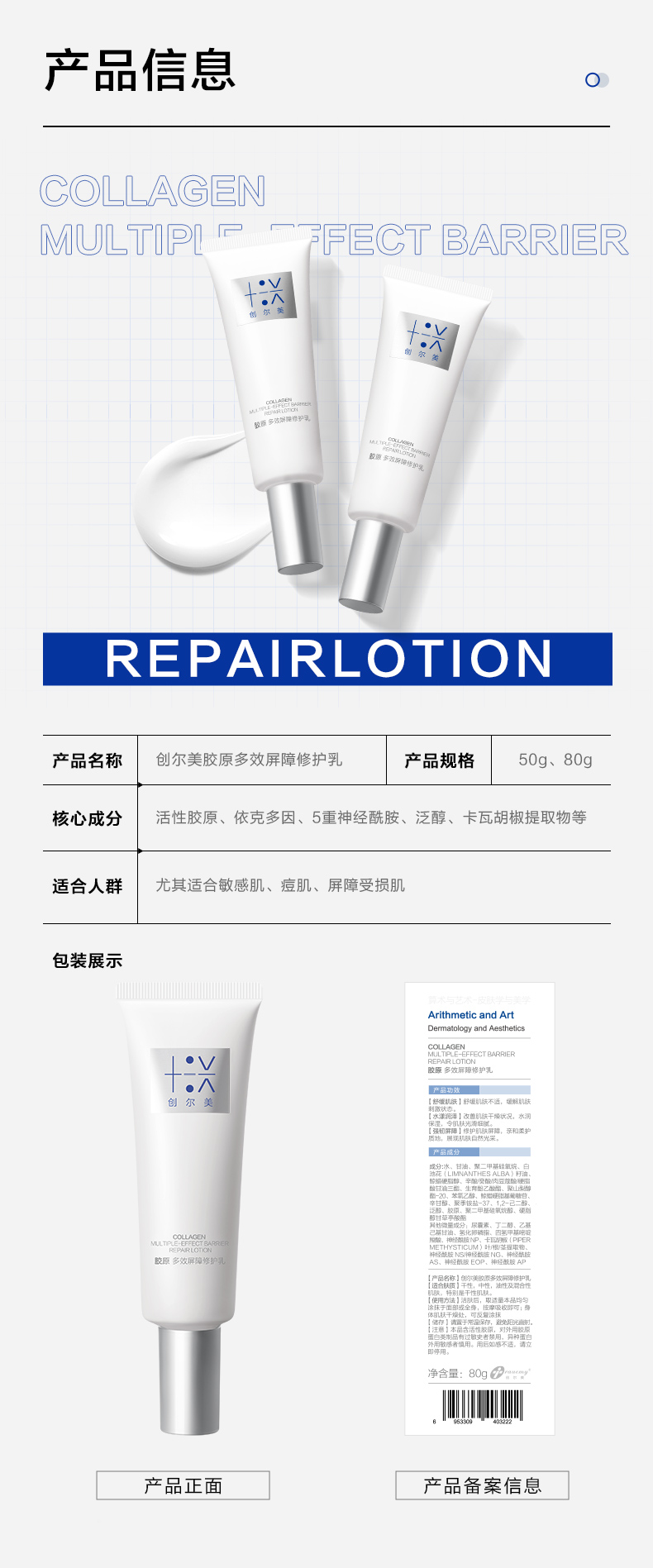 【双旦礼遇季|可用券】创尔美 胶原多效屏障修护乳 50g/80g/250g