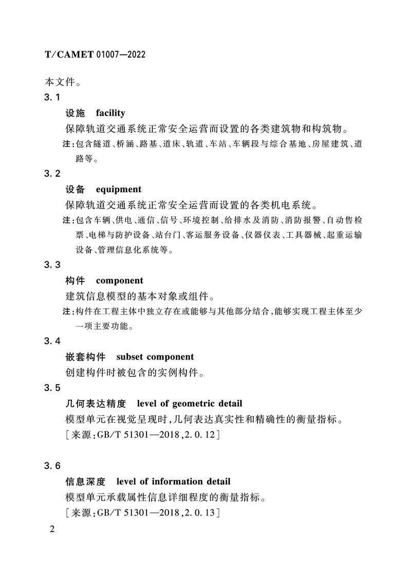6555 城市轨道交通工程信息模型 构件(T/CAMET 01007-2022)
