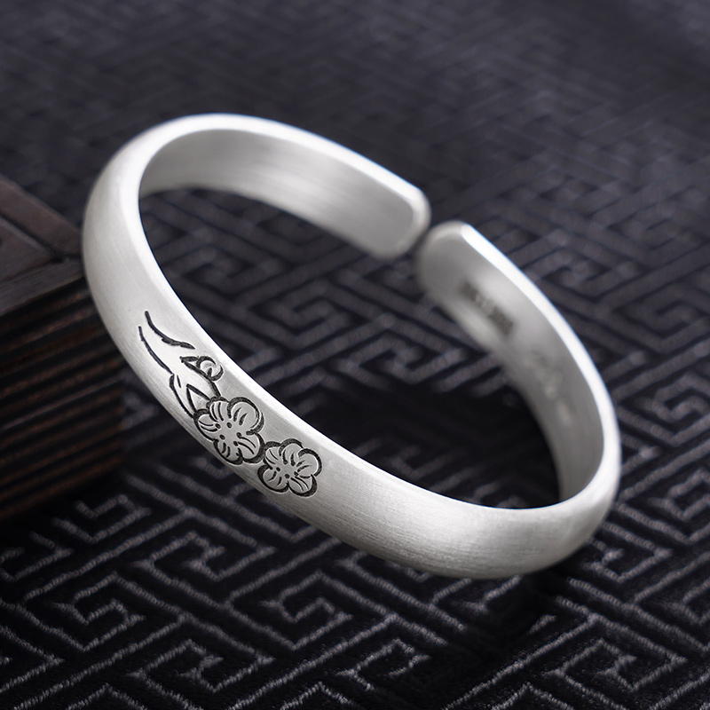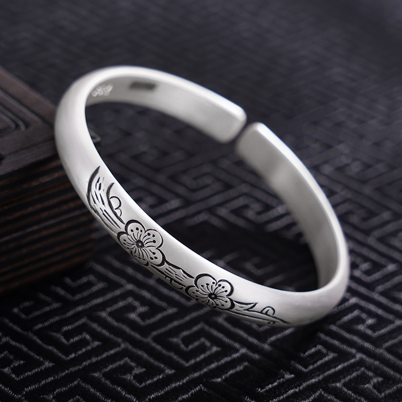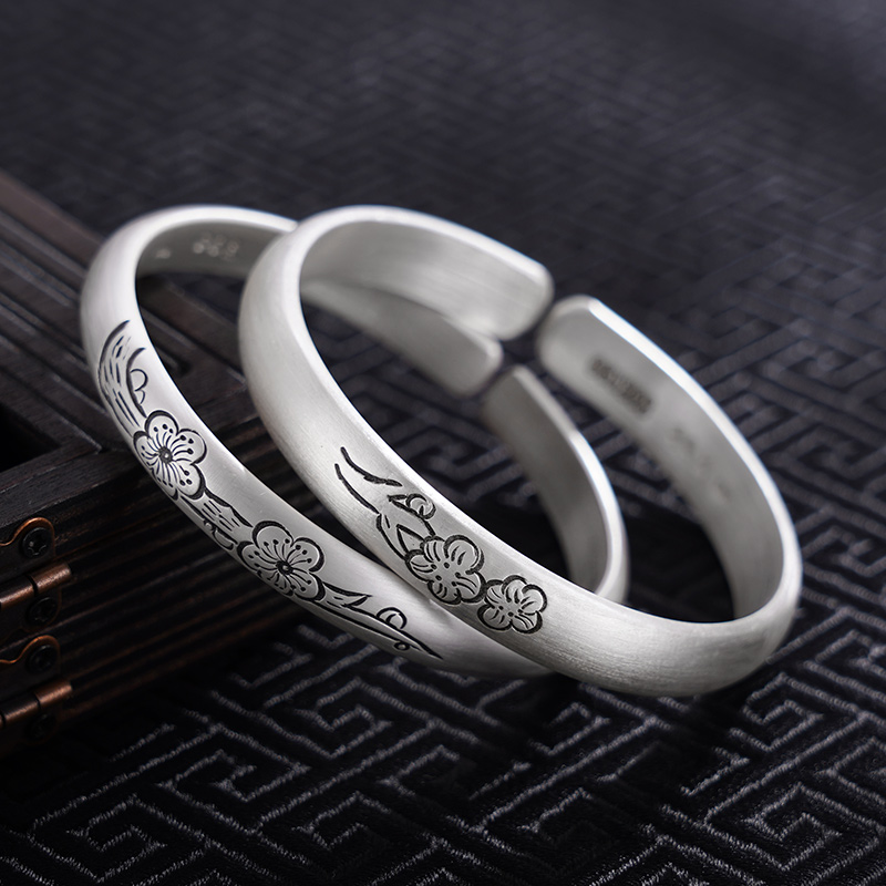 【桃花朵朵】子佩集S999银手工手镯原创设计【55061208】2407