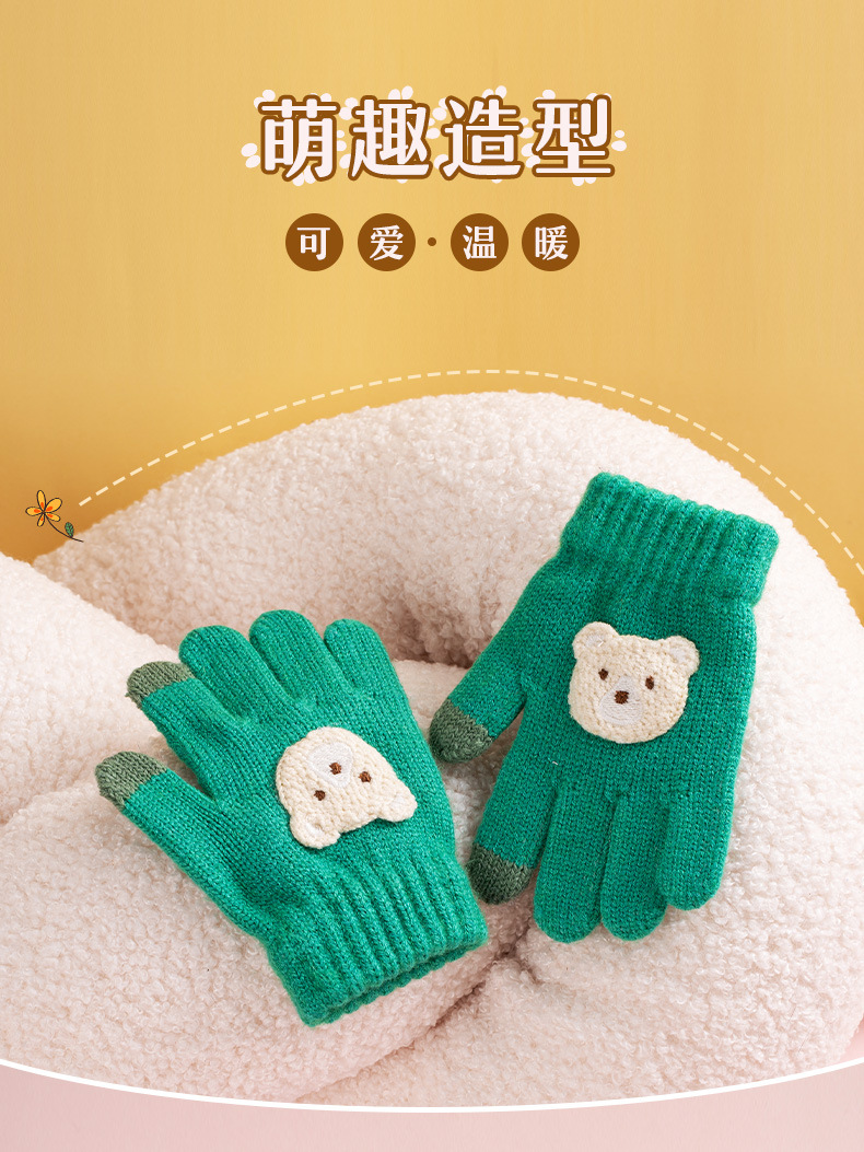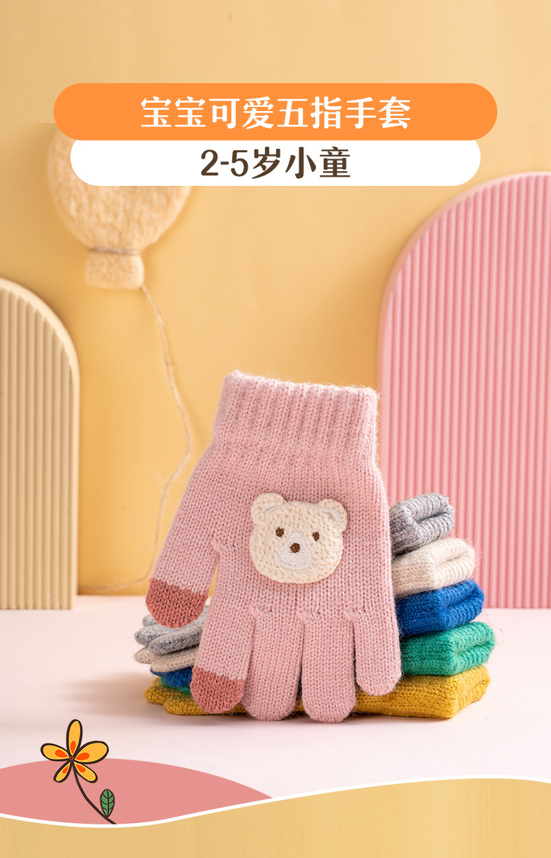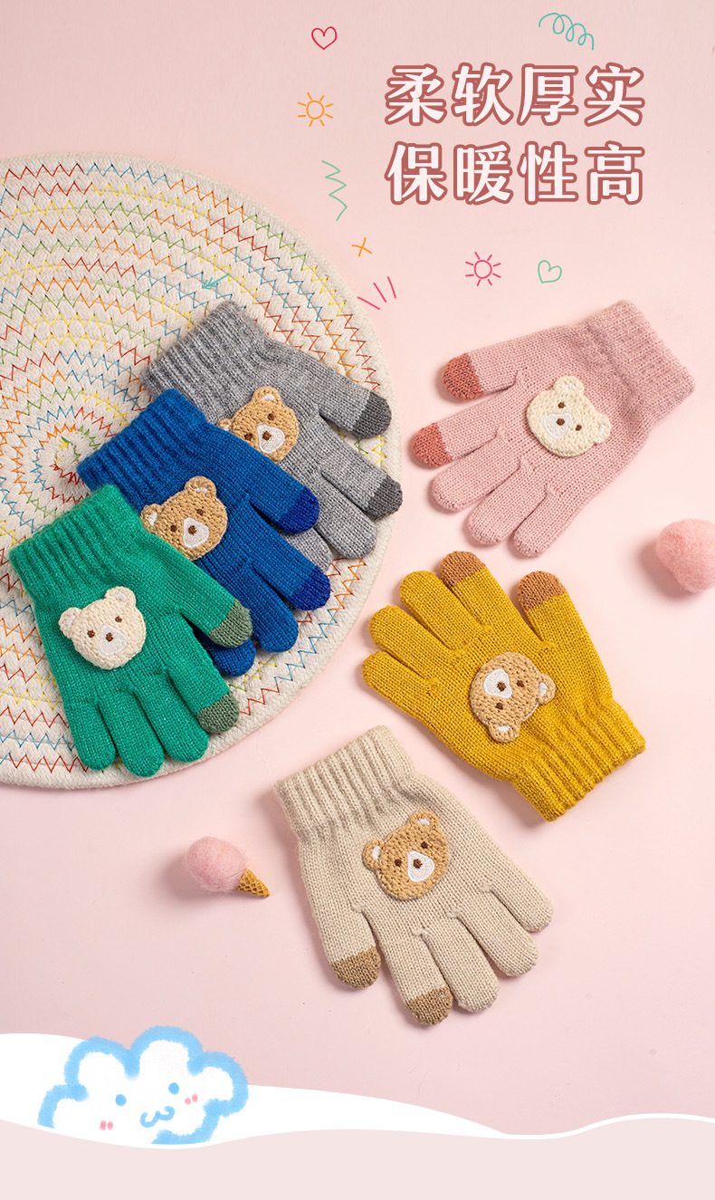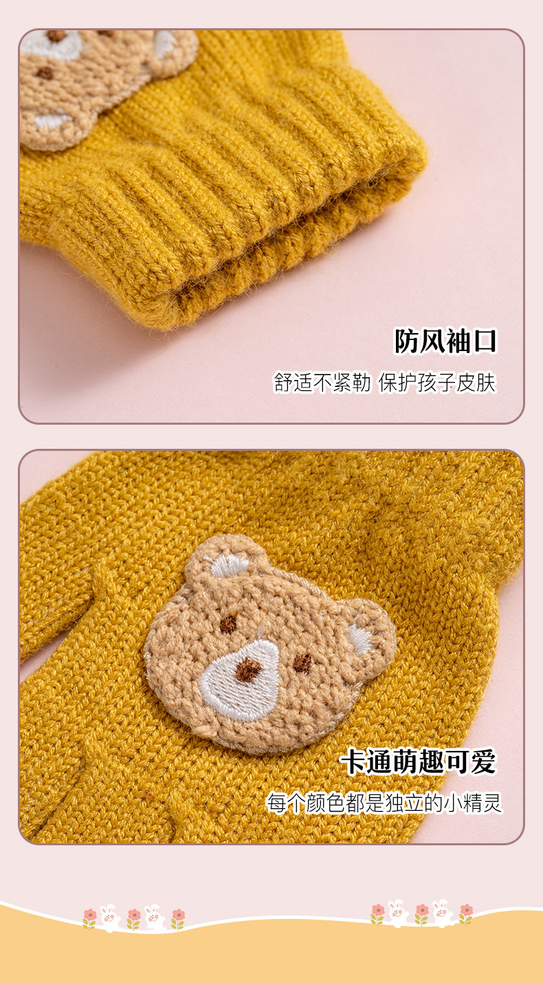 【儿童手套秋冬季新款】男童女童卡通熊 防寒保暖宝宝五指毛线针织手套