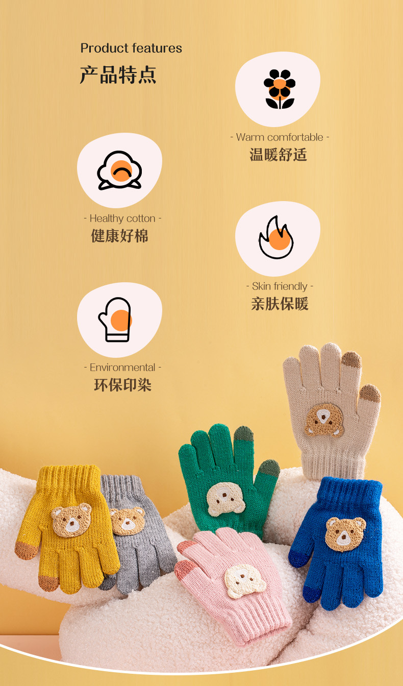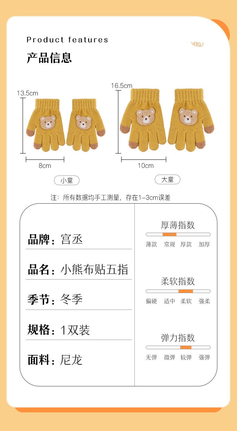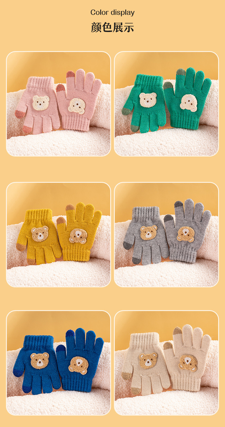 【儿童手套秋冬季新款】男童女童卡通熊 防寒保暖宝宝五指毛线针织手套
