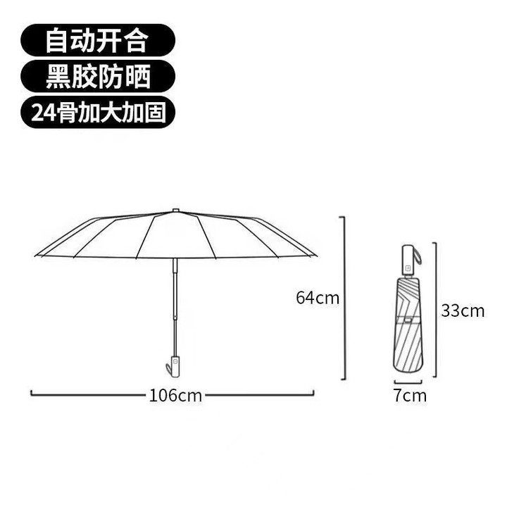 【24骨稳固构造设计 全面升级抗风性能】女神节特惠 三折加厚加大24骨双龙骨全自动晴雨伞男女大号双人晴雨两用雨伞 遮阳防晒防紫外线太阳