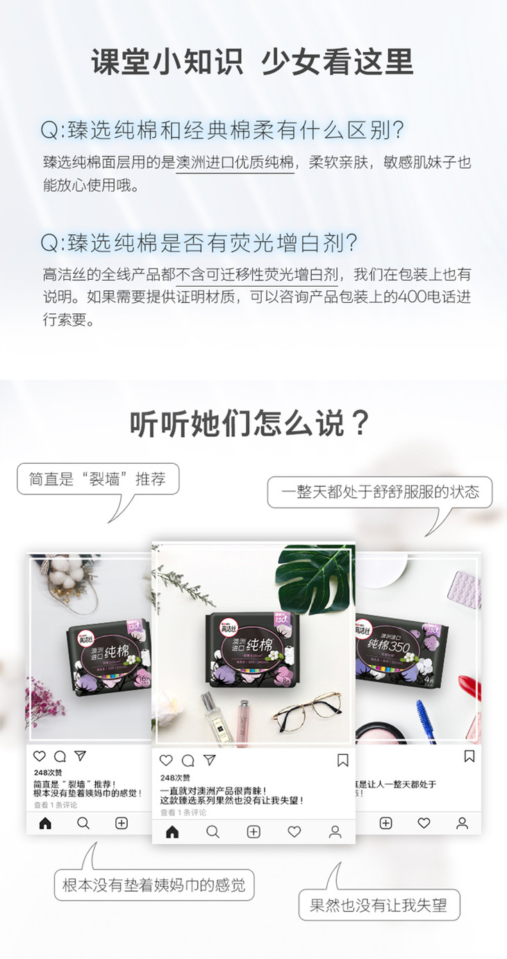 【超市】高洁丝臻选系列极薄纯棉卫生巾日用