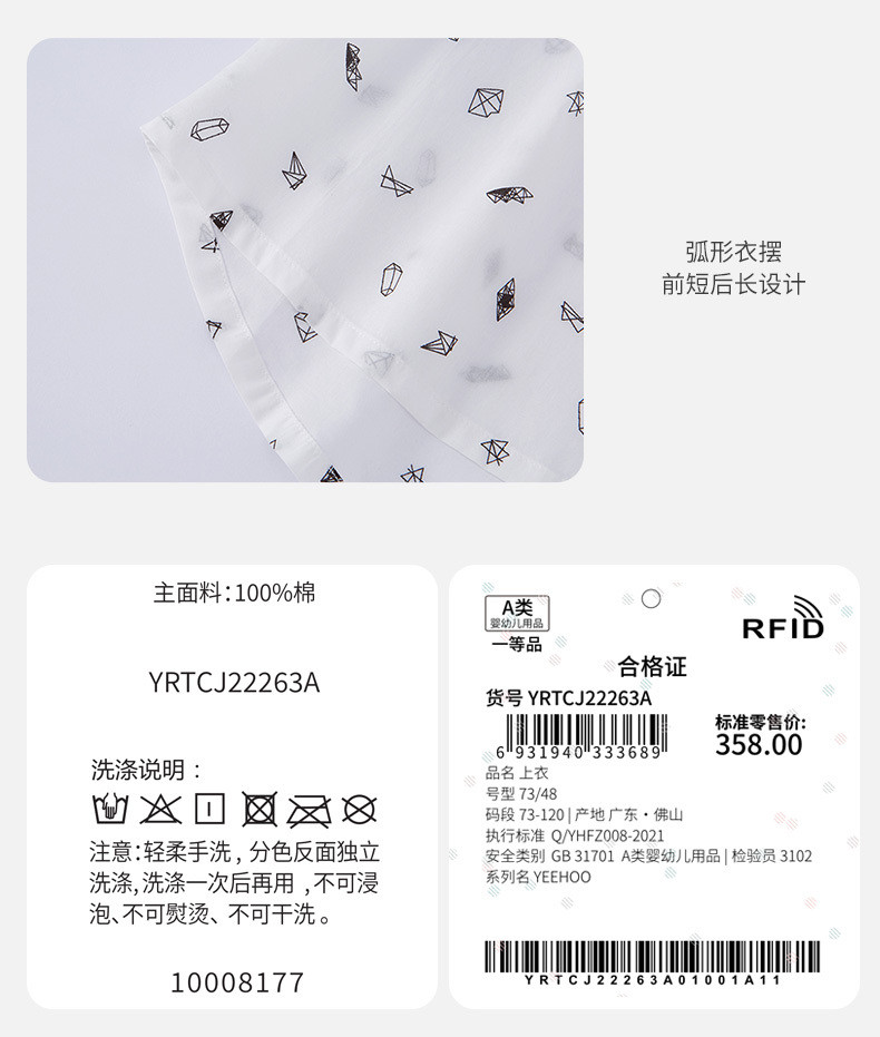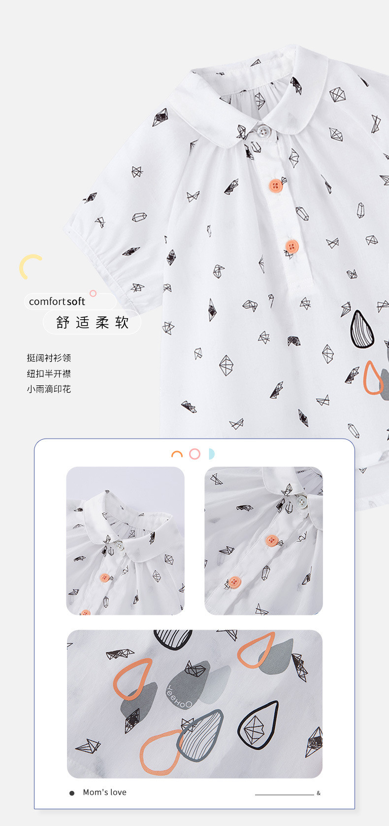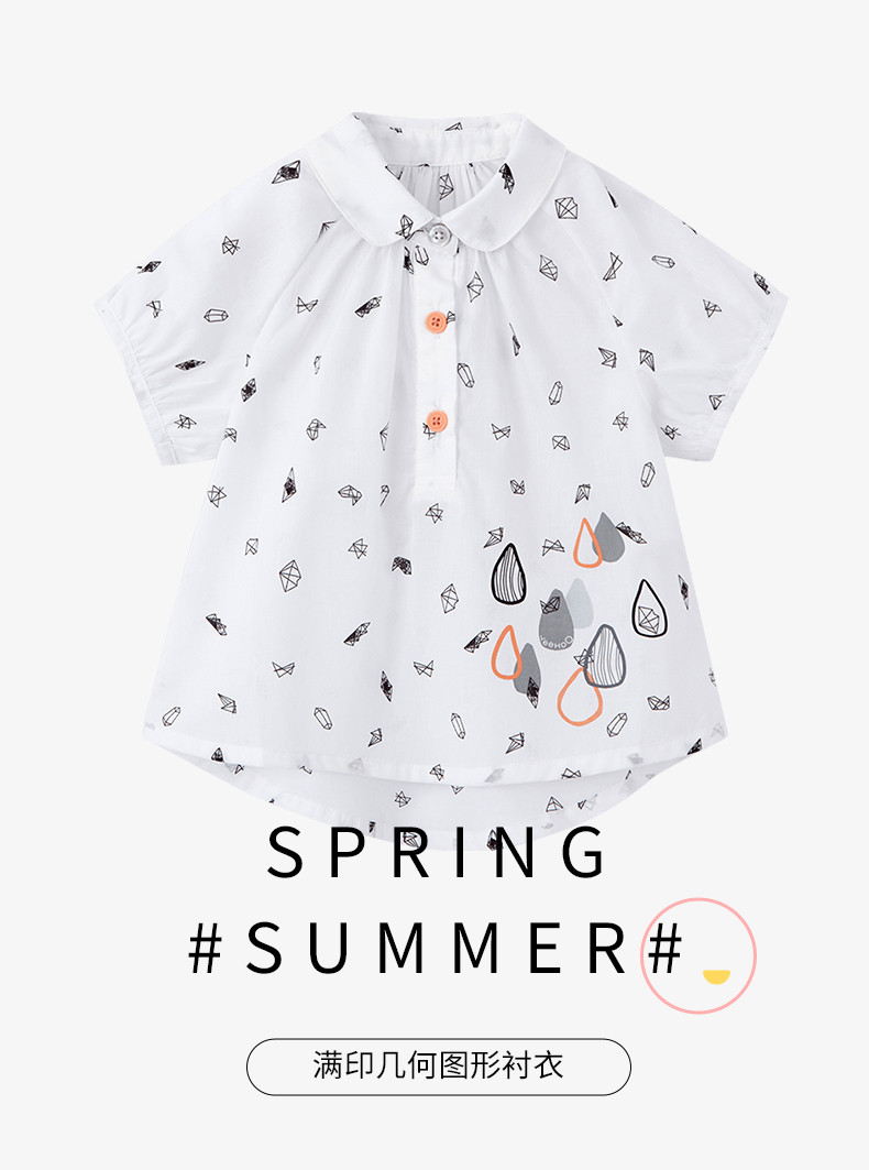 英氏女童翻领衬衫插肩袖休闲上衣短袖衬衣YRTCJ22263A