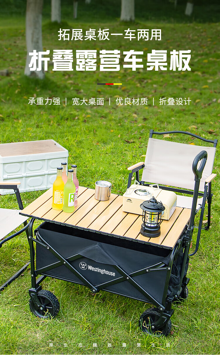 西屋户外小拉车露营车折叠拉快递野营儿童拖车野餐营地车摆摊 营地车+折叠桌板_MN01C
