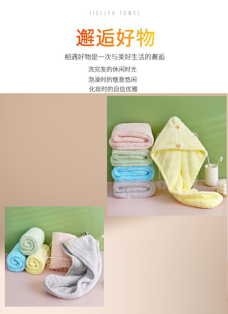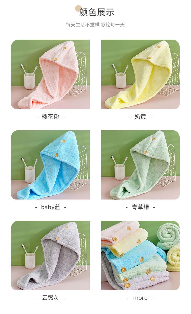 心选丨马卡龙云朵干发帽 方格设计 双层面料 瞬吸透气 橡筋口设计