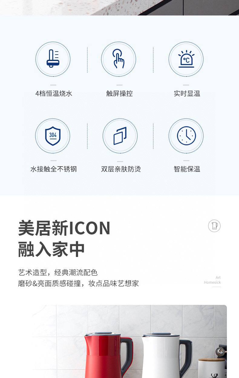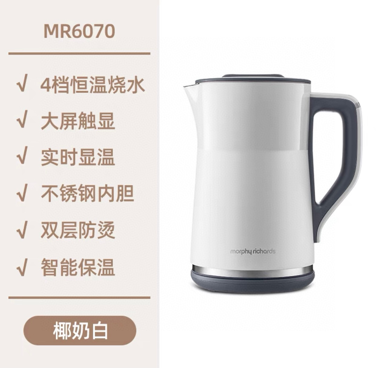 摩飞恒温烧水壶内胆和壶盖都是采用食品级的304不锈钢,用得更安全更放心。
