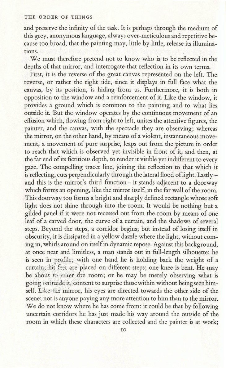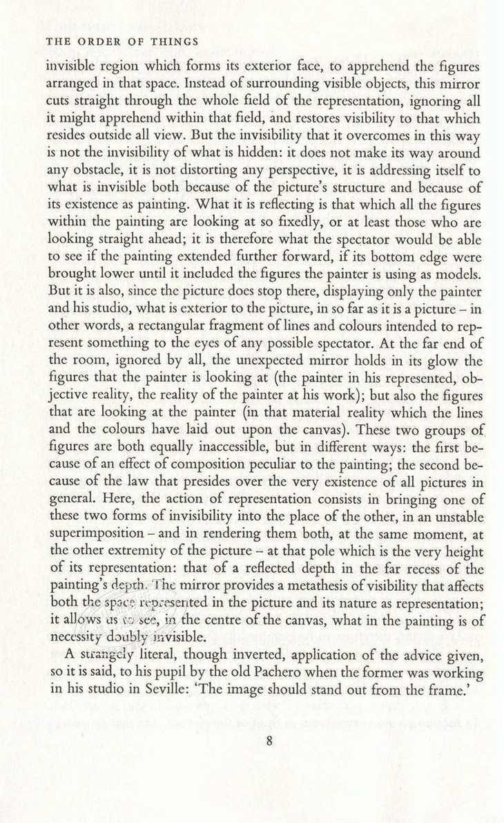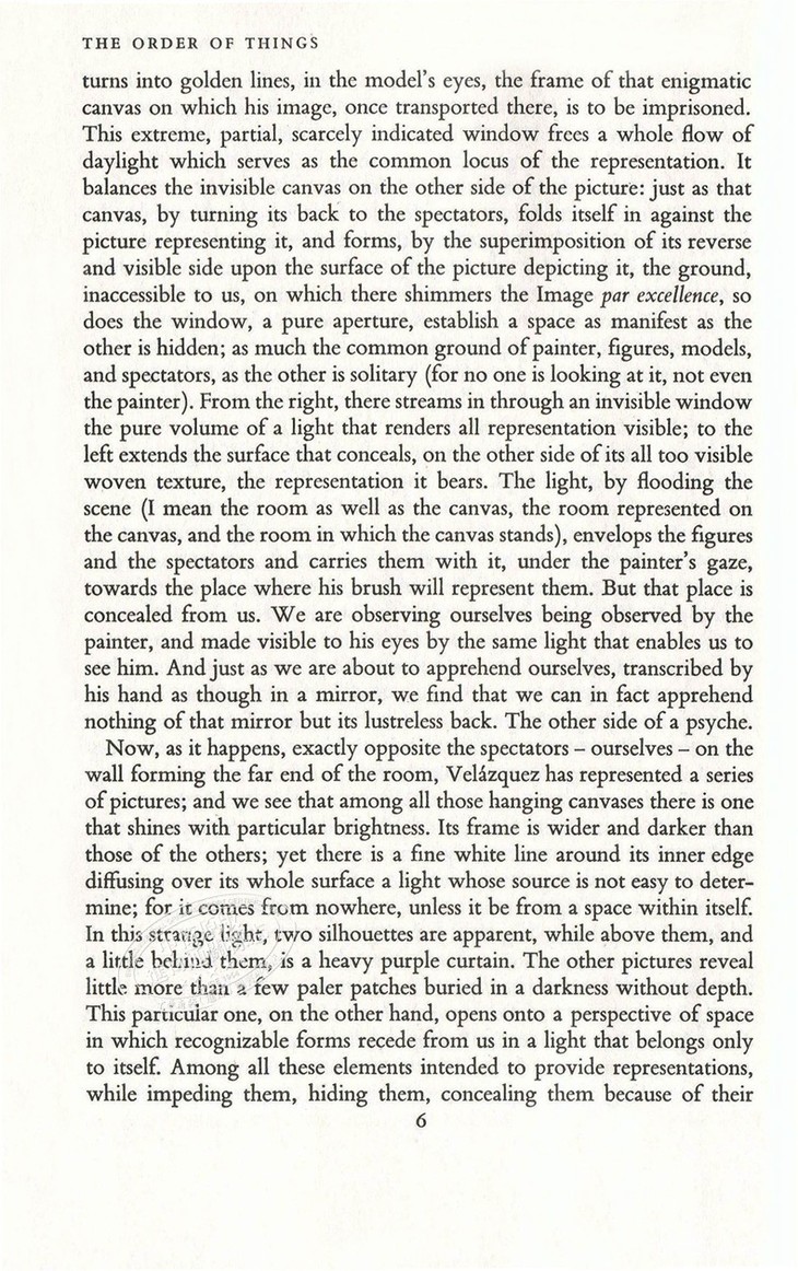 When one defines "order" as a sorting of priorities, it becomes beautifully clear as to what Foucault is doing here. With virtuoso showmanship, he weaves an intensely complex history of thought. He dips into literature, art, economics and even biology in The Order of Things, possibly one of the most significant, yet most overlooked, works of the twentieth century.