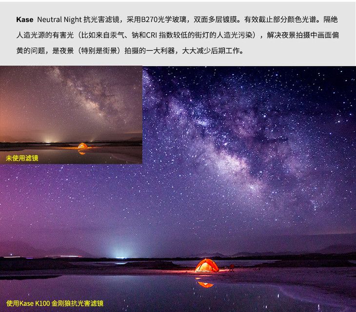 Kase卡色 夜神套装 抗光害滤镜+星空对焦镜 夜景拍摄 77mm 82mm