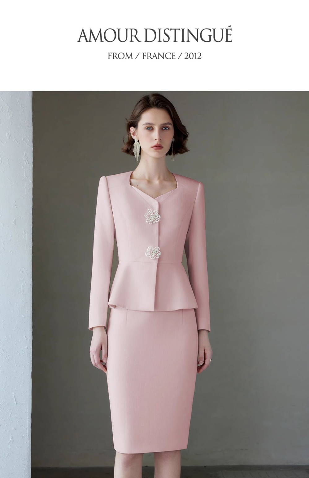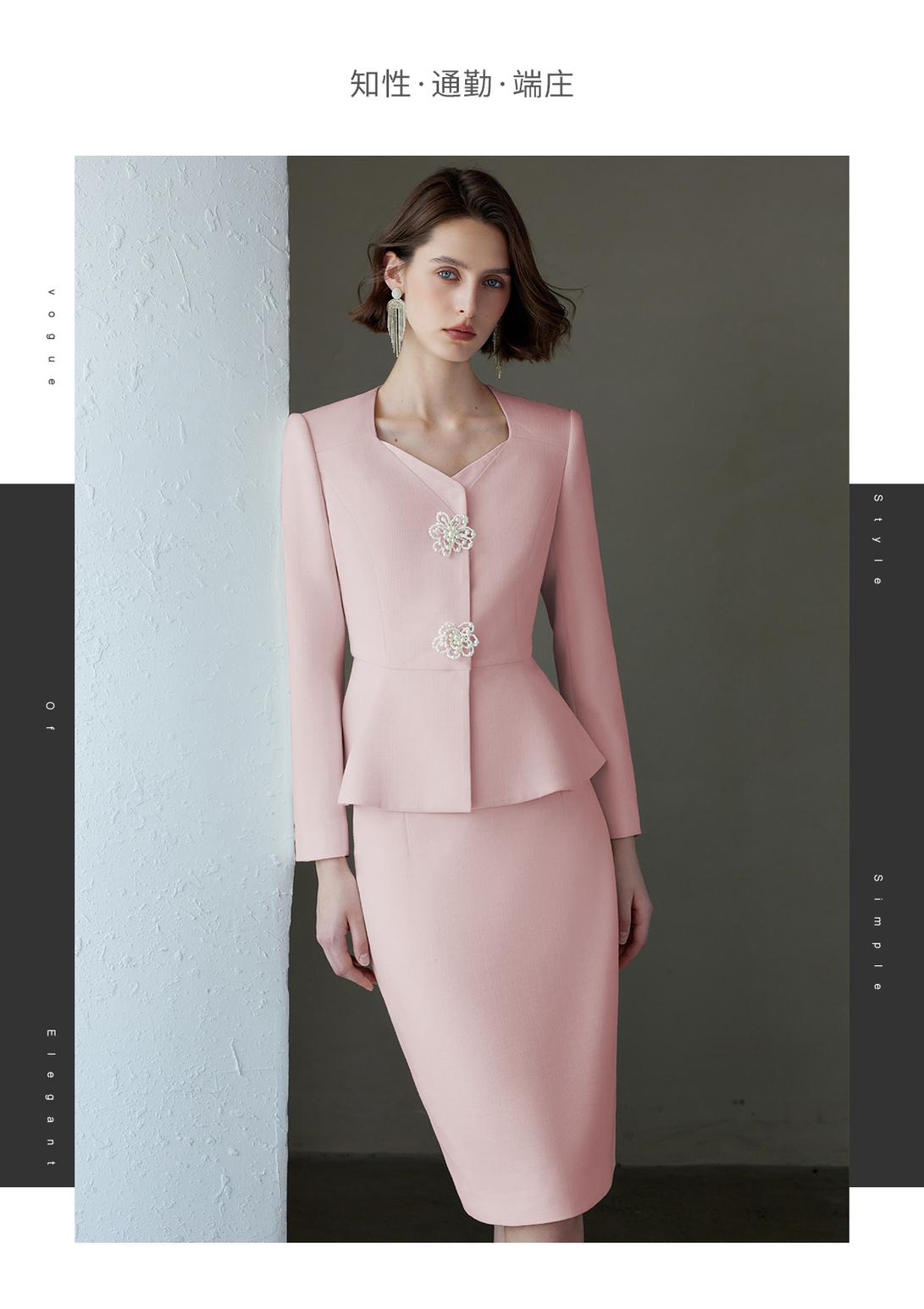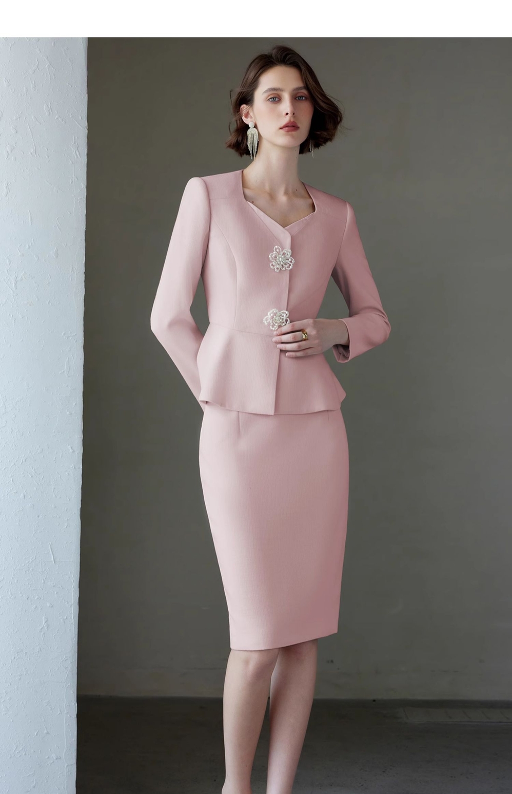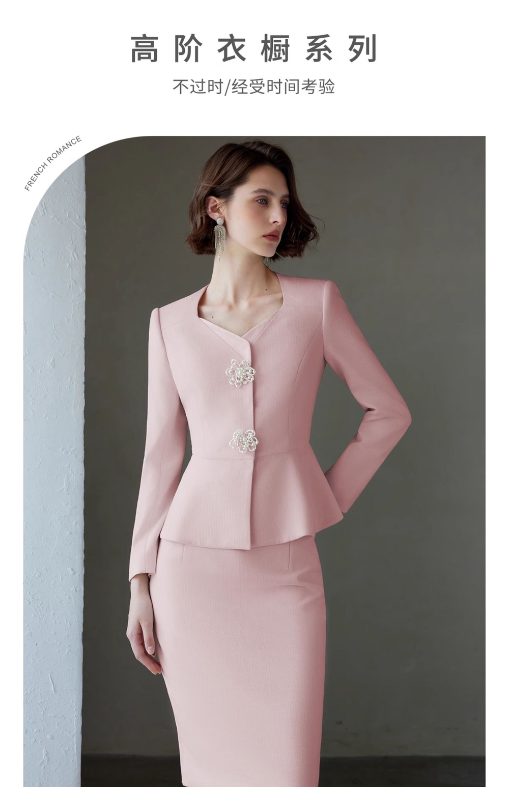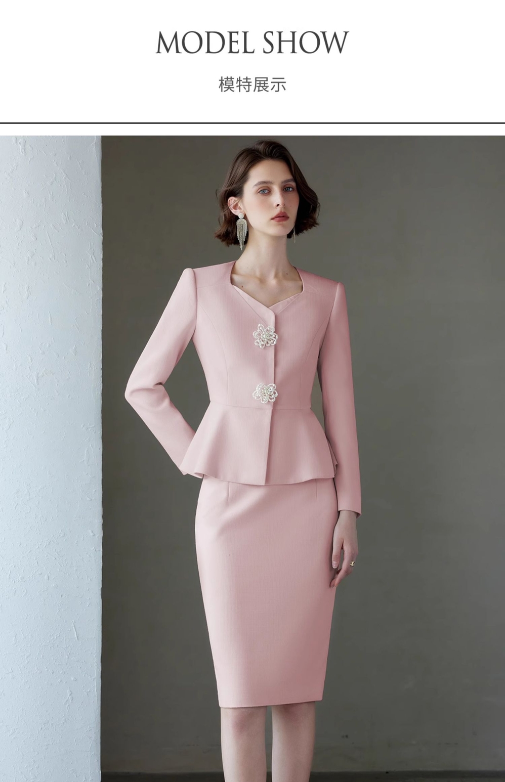 IWY/秋冬粉色女总裁西装套裙女长袖珠宝接待工作服主持人演讲录课套装C2084+S2083