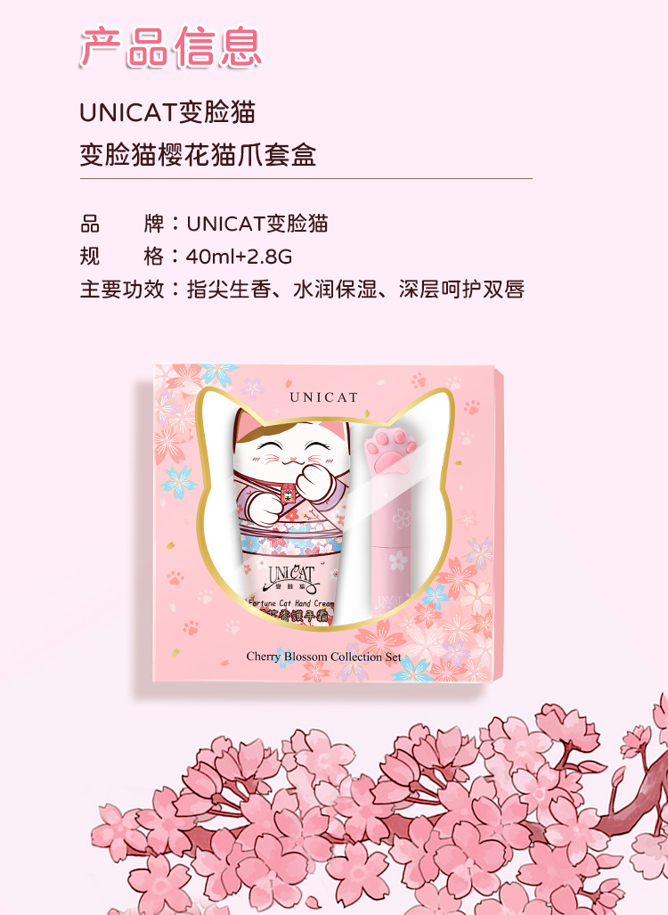 变脸猫【樱花护手霜套装礼盒】变色唇膏 滋润保湿不油腻手霜 商品缩略图0 变脸猫【樱花护手霜套装礼盒】变色唇膏 滋润保湿不油腻手霜 商品缩略图1 变脸猫【樱花护手霜套装礼盒】变色唇膏 滋润保湿不油腻手霜 商品缩略图2 变脸猫【樱花护手霜套装礼盒】变色唇膏 滋润保湿不油腻手霜 商品缩略图3 变脸猫【樱花护手霜套装礼盒】变色唇膏 滋润保湿不油腻手霜 商品缩略图4