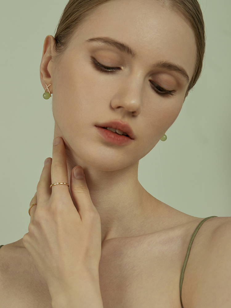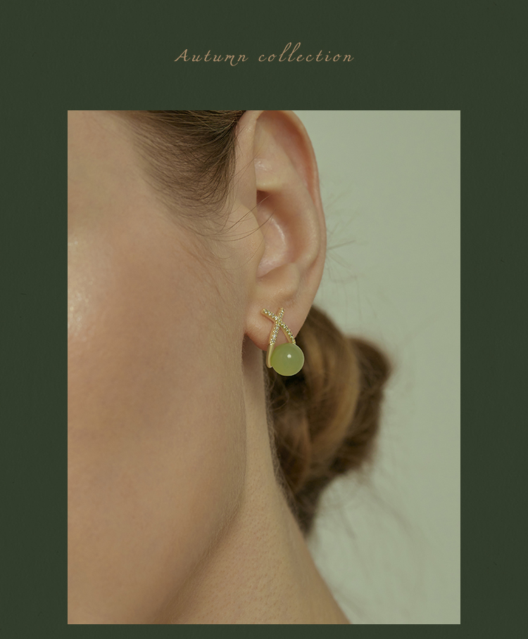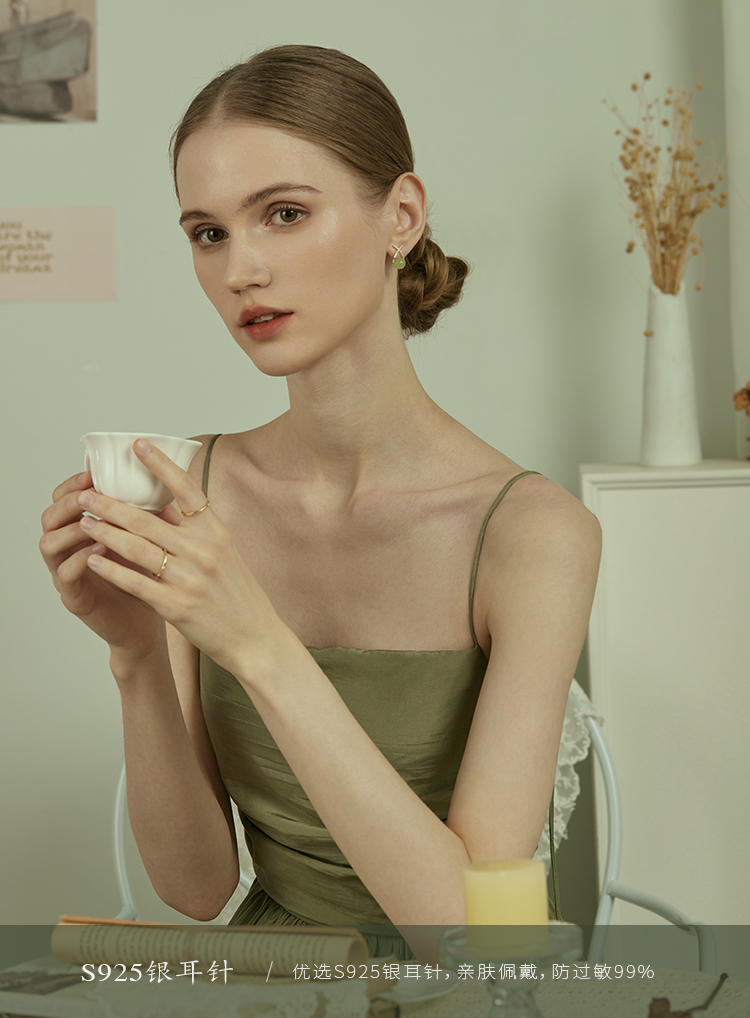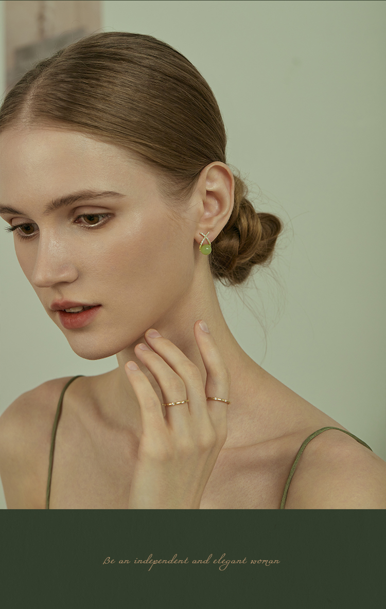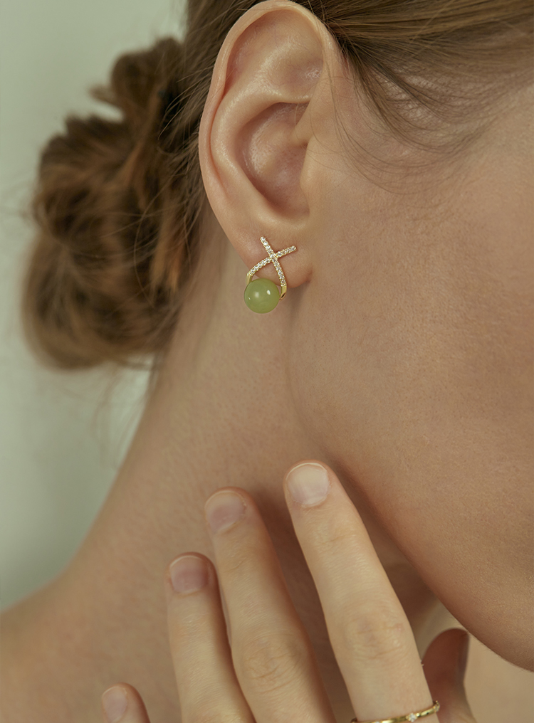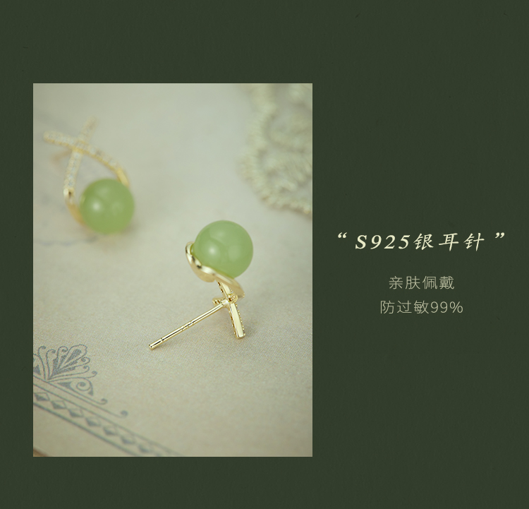 Oflye潮流饰品 微镶交叉仿绿玉石耳钉女款2024新款轻奢耳环