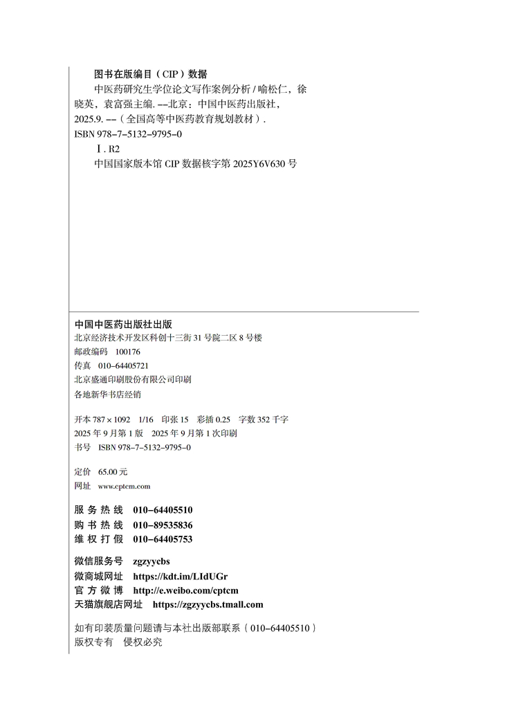 中医药研究生学位论文写作案例分析 全国中医药行业高等教育十四五创新教材 喻松仁 徐晓英 袁富强 9787513297950中国中医药出版社